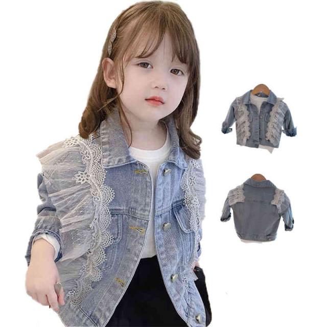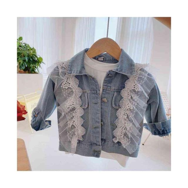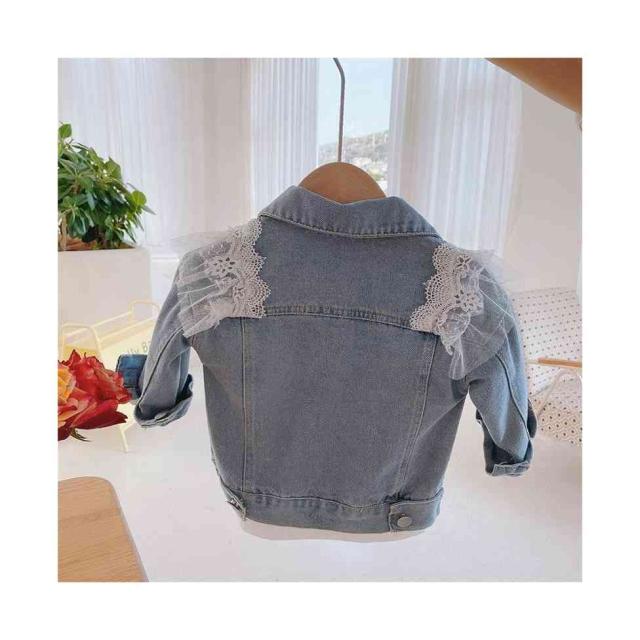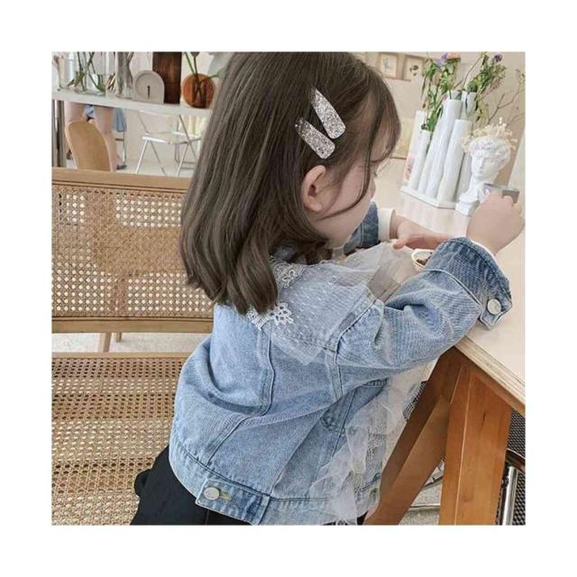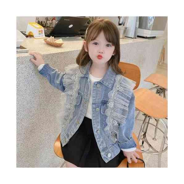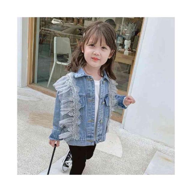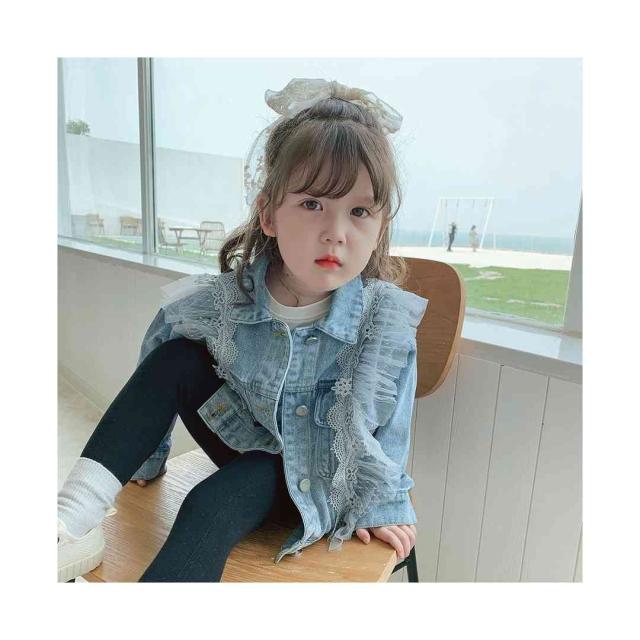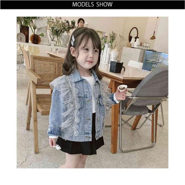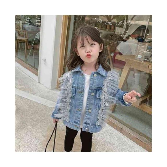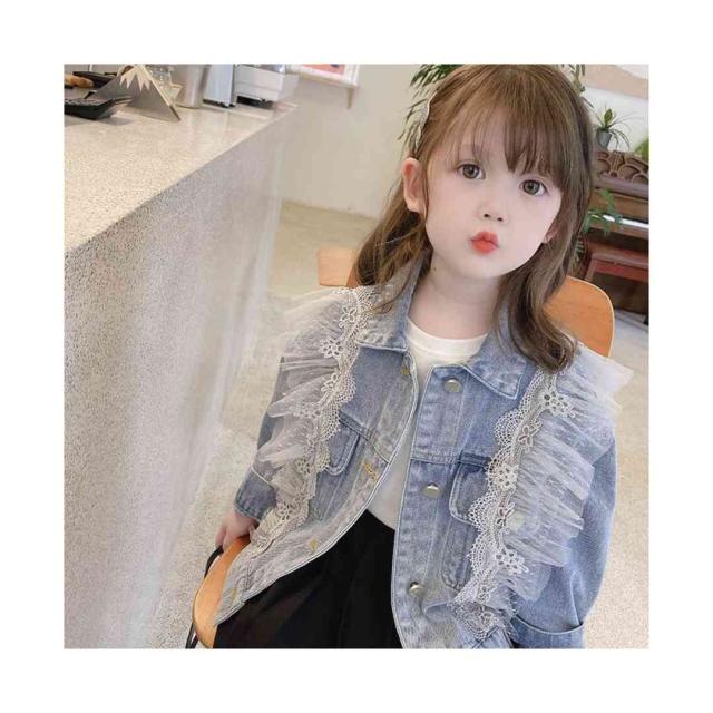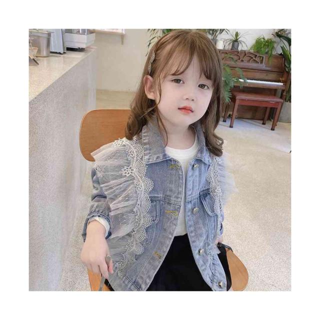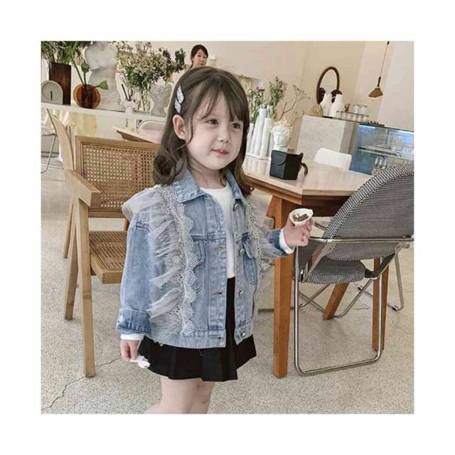 デニムジャケット ジャケット チュールジャケット 春秋 おしゃれジャケット 折襟 キッズ ショート丈 ジャケット 長袖 アウター トップス 子供服 デニムジャケット 無地 シンプル カジュアル おしゃれ 女の子