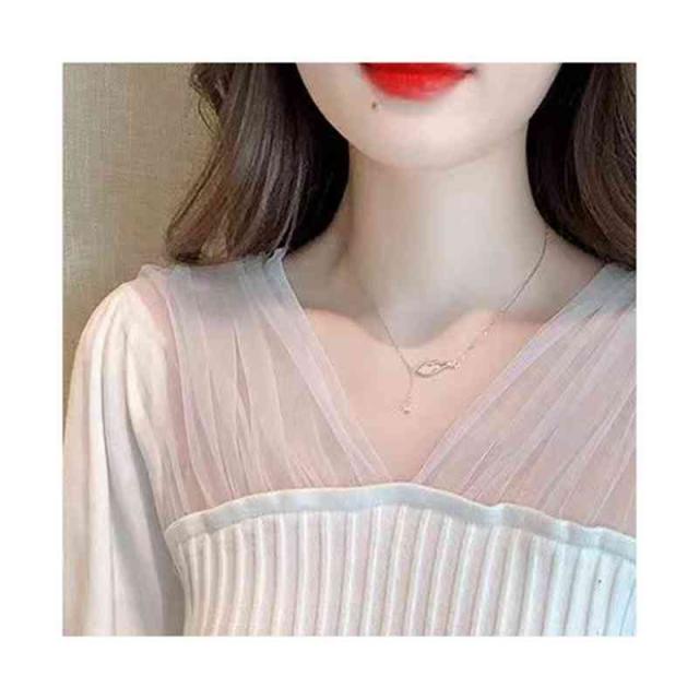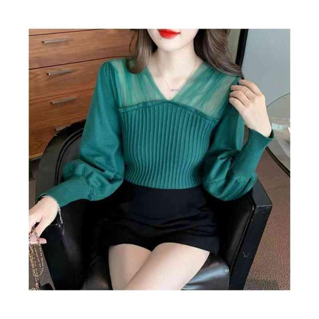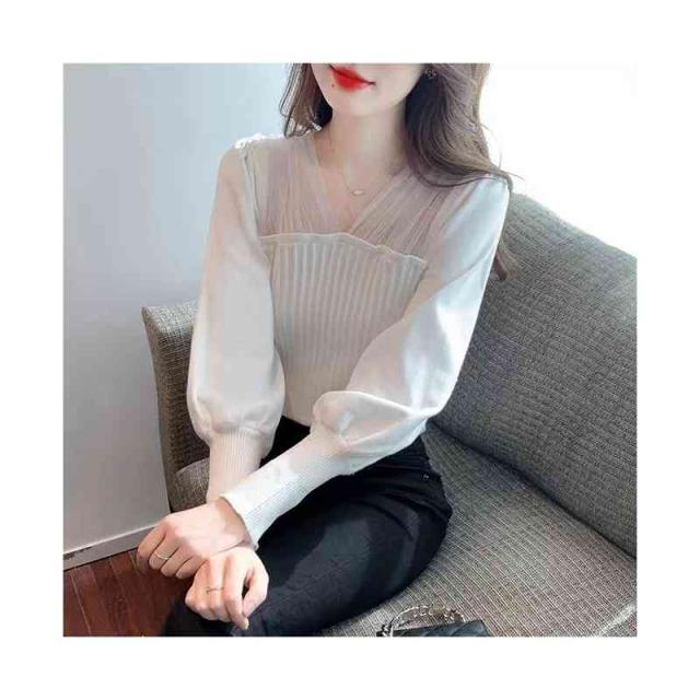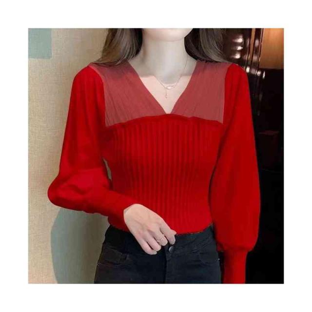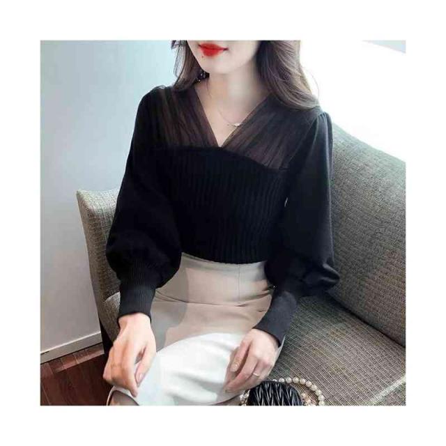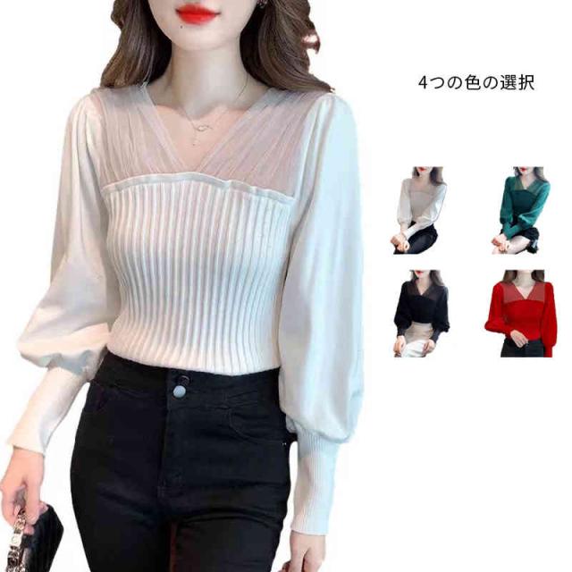 シャツブラウス フォーマルブラウス 春秋 インナーブラウス フリルブラウス おしゃれ ニットブラウス ショートブラウス レディース ブラウス プルオーバー 無地 シンプル カジュアル 送料無料 Vネック