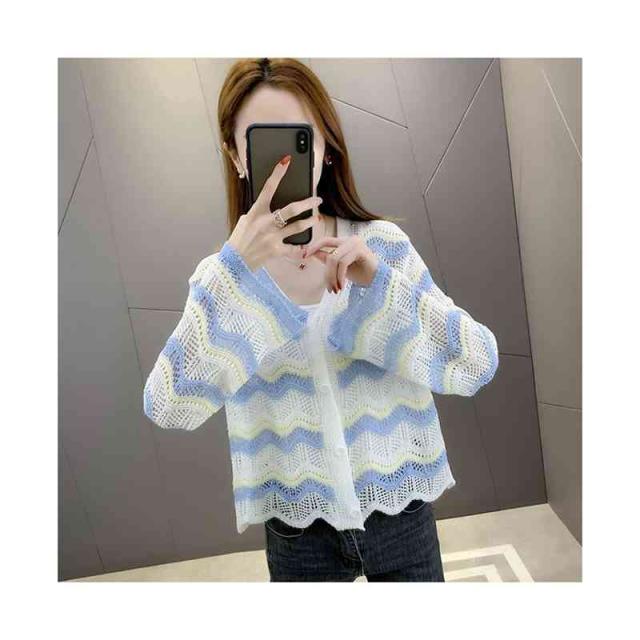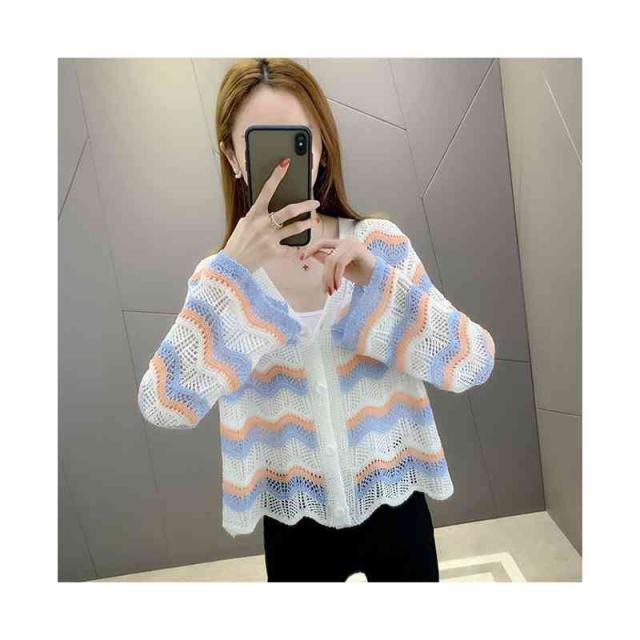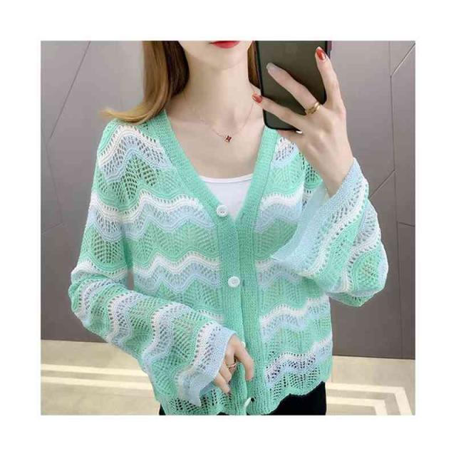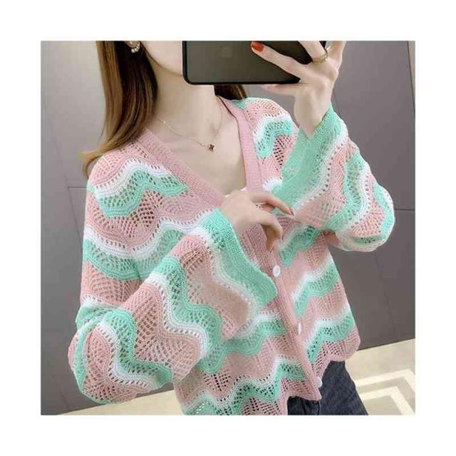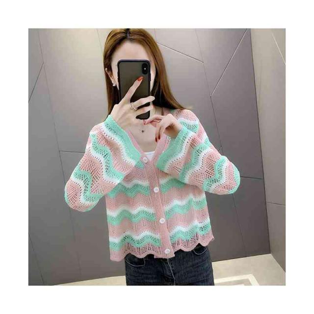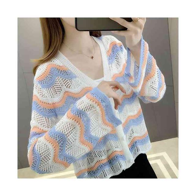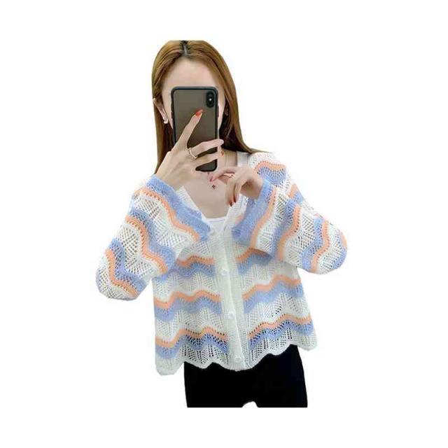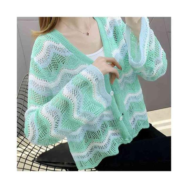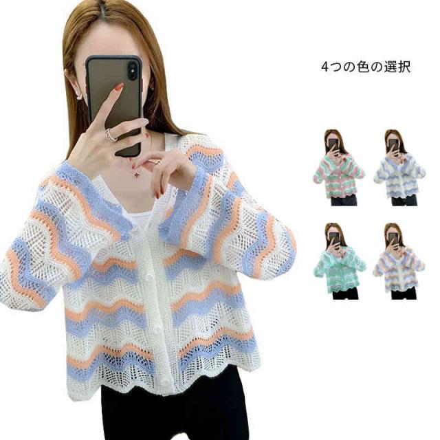 春夏秋 薄手 切り替え ボーダーカーディガン ニットカーディガン トップス カーディガン ニットトップス ショート丈 フリルカーディガン おしゃれカーディガン おしゃれ フェミニン おでかけ 長袖