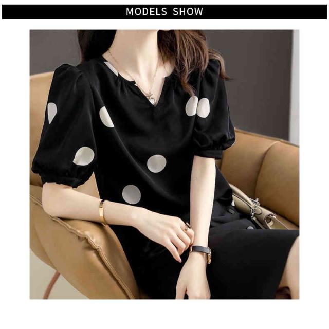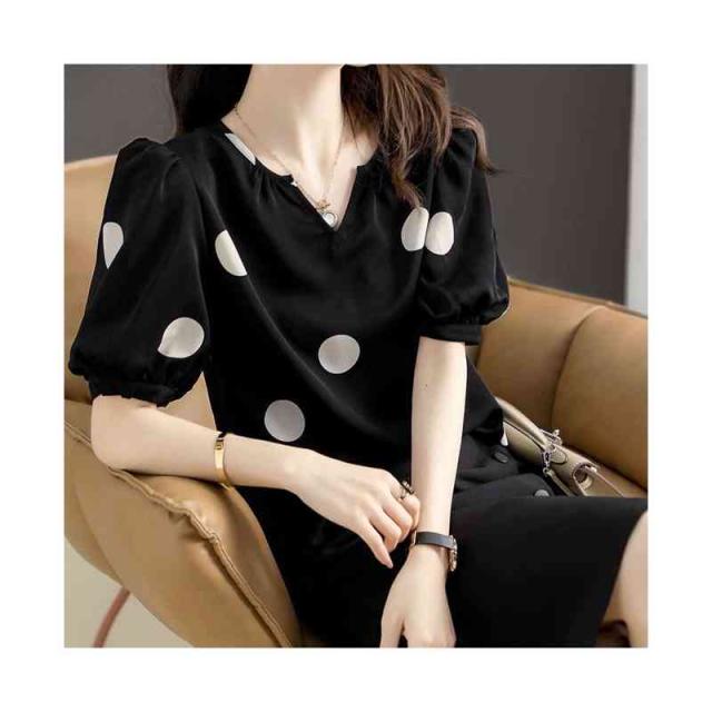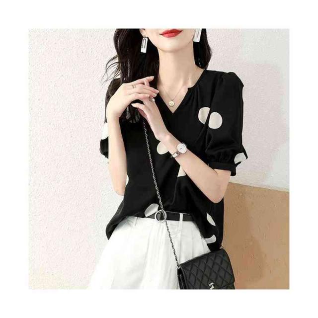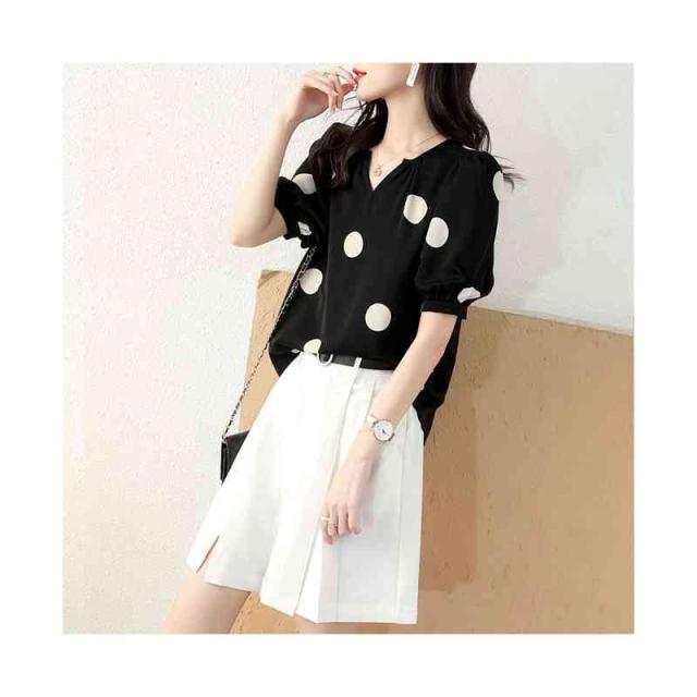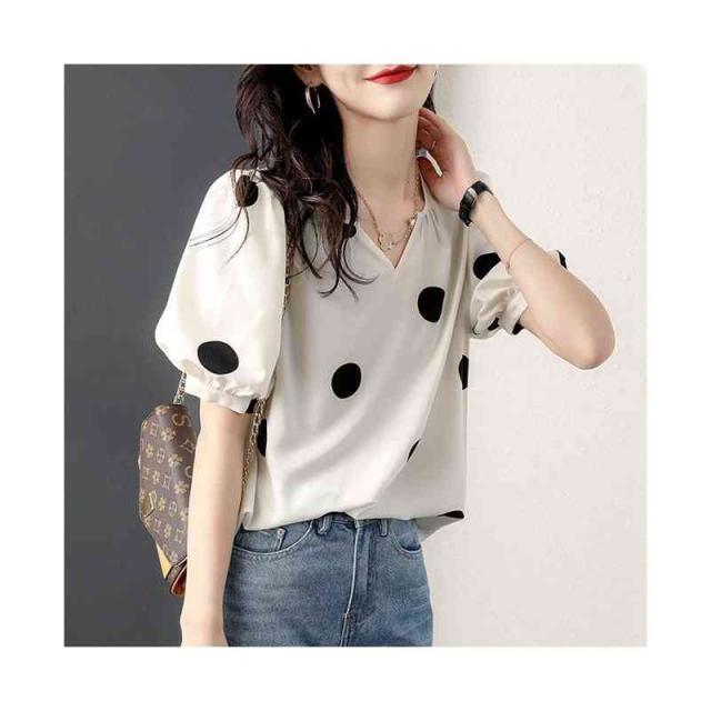 半袖 春夏 レディース vネック フォーマルブラウス おしゃれブラウス 着やせ 送料無料 おしゃれ トップス ドット柄ブラウス ゆったり ブラウス フリル袖 ブラウス フェミニン 大人 かわいい 普段着 ドット柄