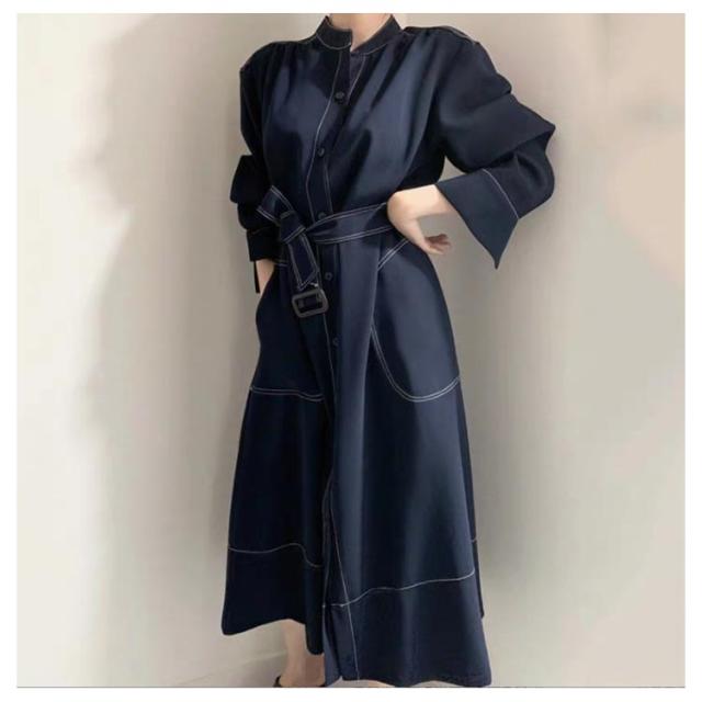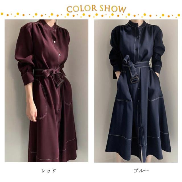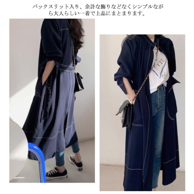 トレンチコート ワンピース シャツワンピース シャツワンピ ロング ミモレ丈 リボン ベルト付き aライン スリット 長袖 レディース 春秋 きれいめ ワンピ 前開き ボタン
