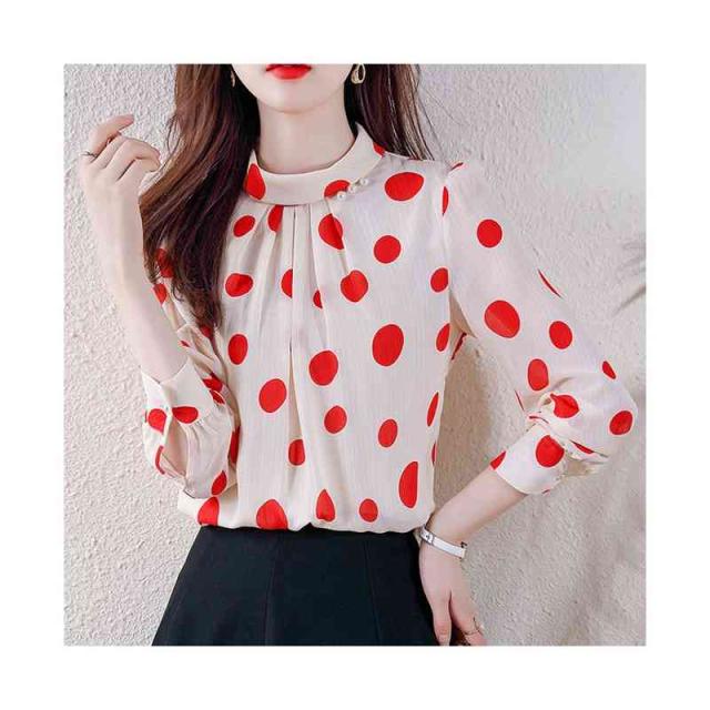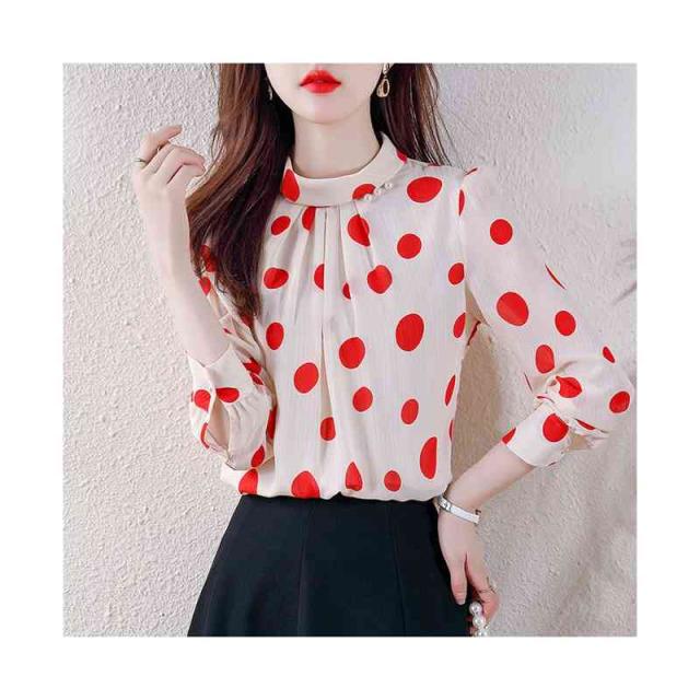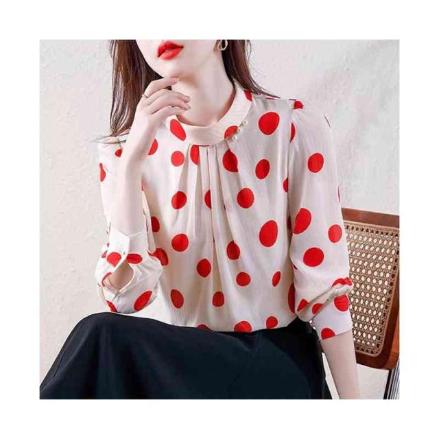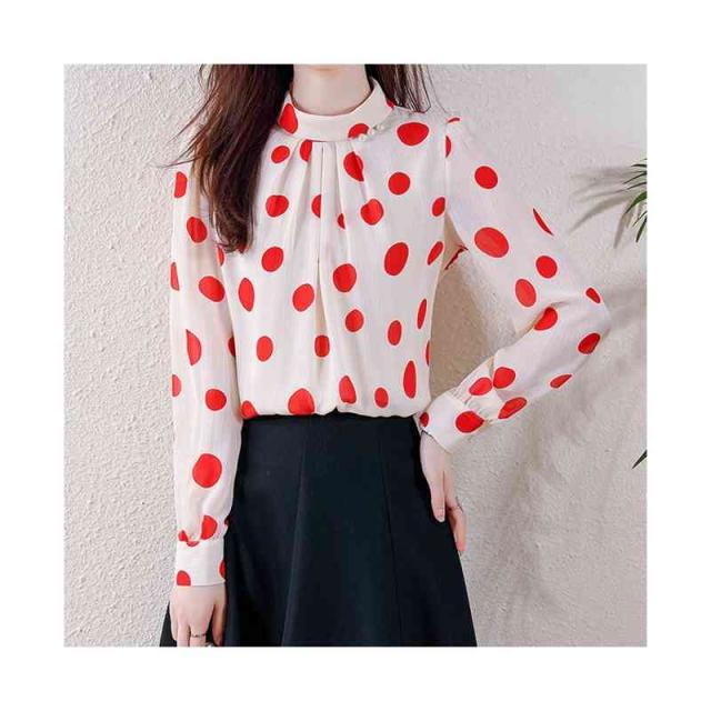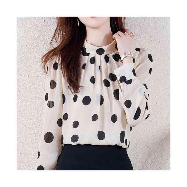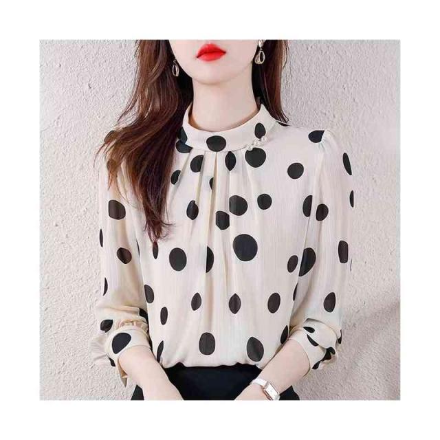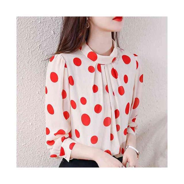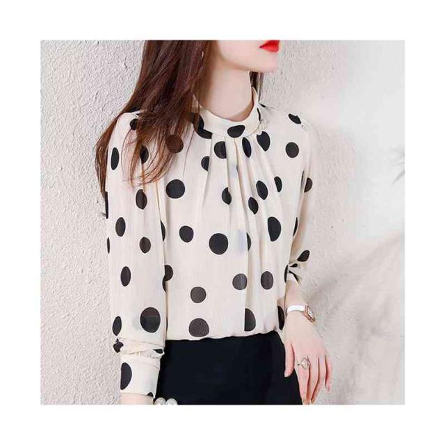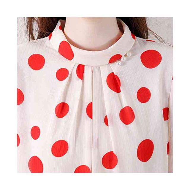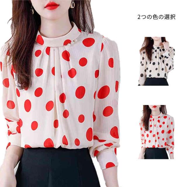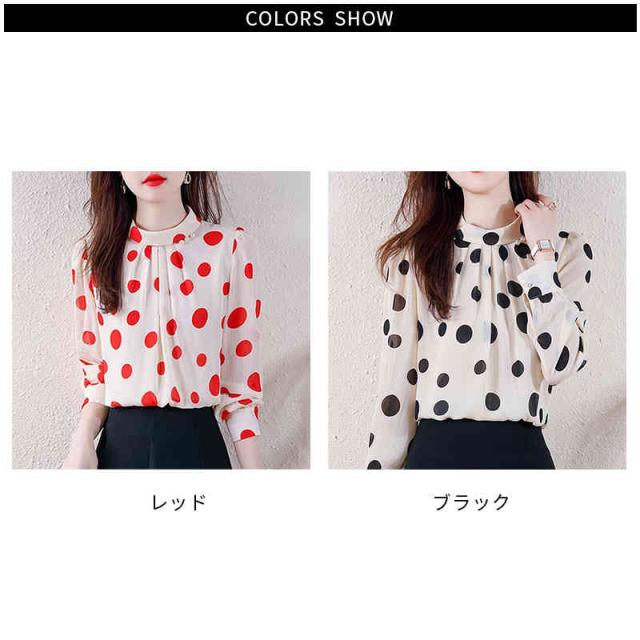 プリーツブラウス シンプル シフォンブラウス 立ち襟 トップス レディース ドット柄ブラウス フォーマルブラウス ドット柄 ブラウス おしゃれブラウス インナーウエア 送料無料 カジュアル おしゃれ インナーブラウス