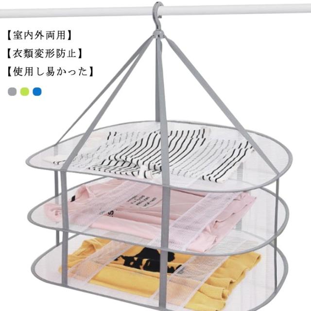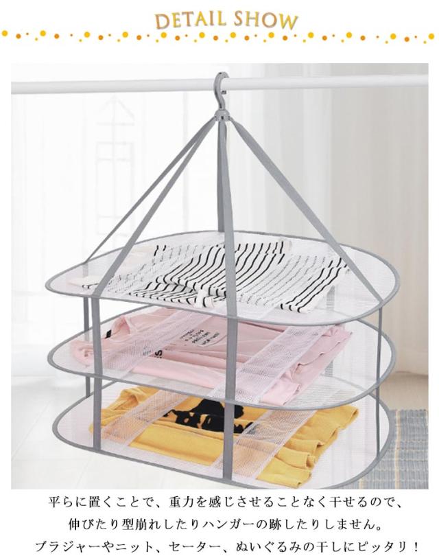 平干しネット 3段式平干しネット 長方形タイプ 折りたたみ セーター干し 3段 フック付き 洗濯 平干し コンパクト 長方形 ぬいぐるみ 枕 物干し ハンガー 折りたたみ セーター干し メッシュ ニット 型崩れ防止 室内干し 便利グッズ