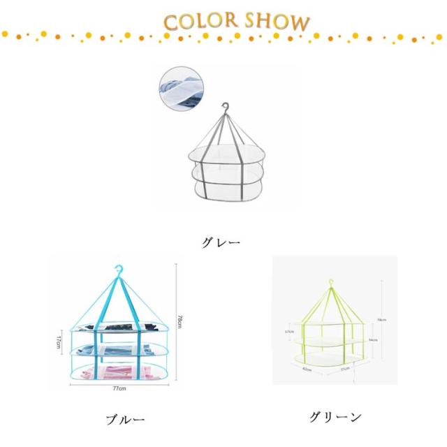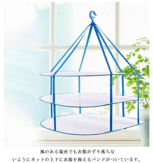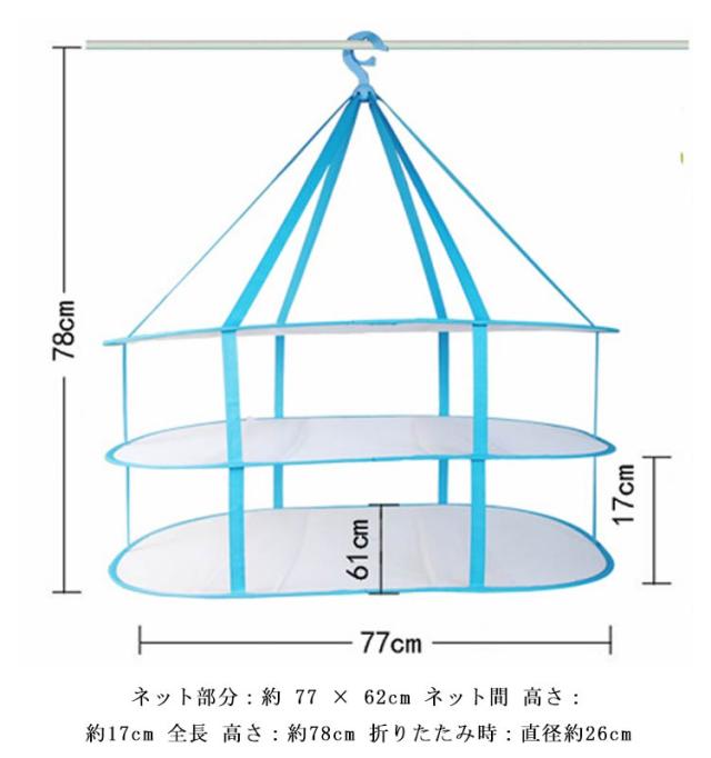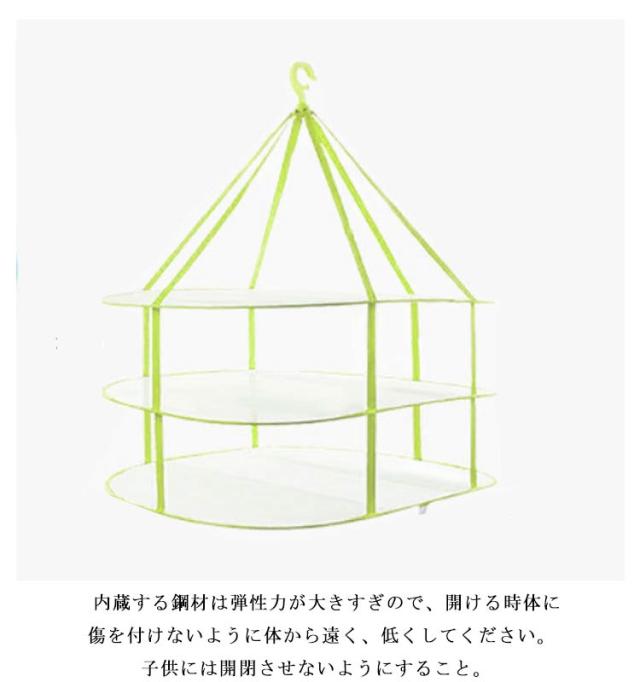 | 【衣類変形防止】 平らに置くことで、重力を感じさせることなく干せるので、伸びたり型崩れしたりハンガーの跡したりしません。ブラジャーやニット、セーター、ぬいぐるみの干しにピッタリ! 【使用し易かった】 防風デザインの付きし易いフックと2箇所の幅広い滑り止め付いております。メッシュ素材なので、乾きにくい衣類でも心配する必要がありません。3段平干しネットで一気に干せますから。 【室内外両用】 室内外両方使用できます。折り畳み式26cmくらいコンパクトなので、収納も便利、持ち運びも便利です。レジャー、キャンプなどにも利用可能です。 【素材】 材質:本体/ABS樹脂 ネット/ポリエステル 金属部分/ステンレス 【サイズ】 ネット部分:約 77 × 62cm ネット間 高さ:約17cm 全長 高さ:約78cm 折りたたみ時:直径約26cm 【防風】 風のある場所でも衣類がずり落ちないようにネットの上下に衣服を抑えるバンドがついています。 【便利】折りたたみができるので、使わない時は約26cmにたたんで収納できます。 【注意事項】 内蔵する鋼材は弾性力が大きすぎので、開ける時体に傷を付けないように体から遠く、低くしてください。子供には開閉させないようにすること。 | |