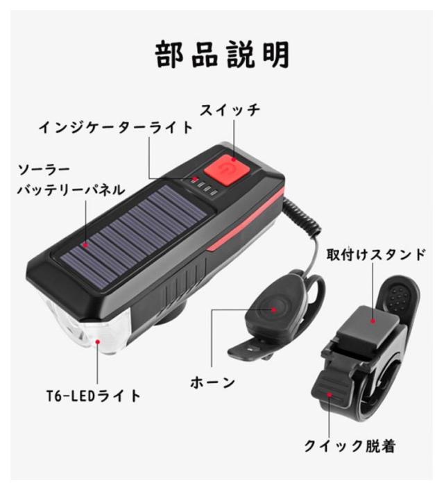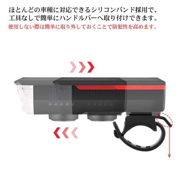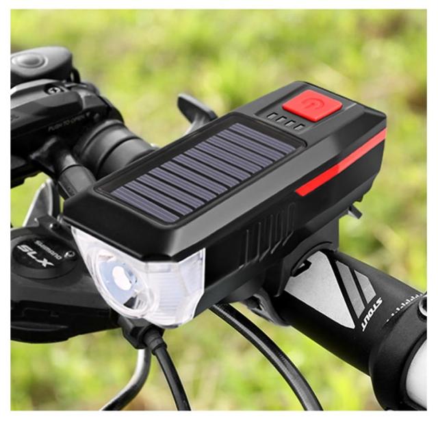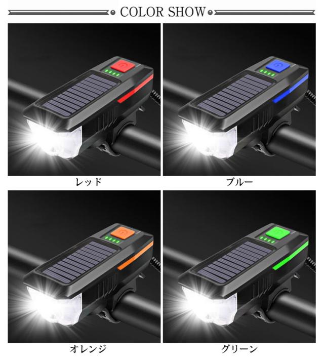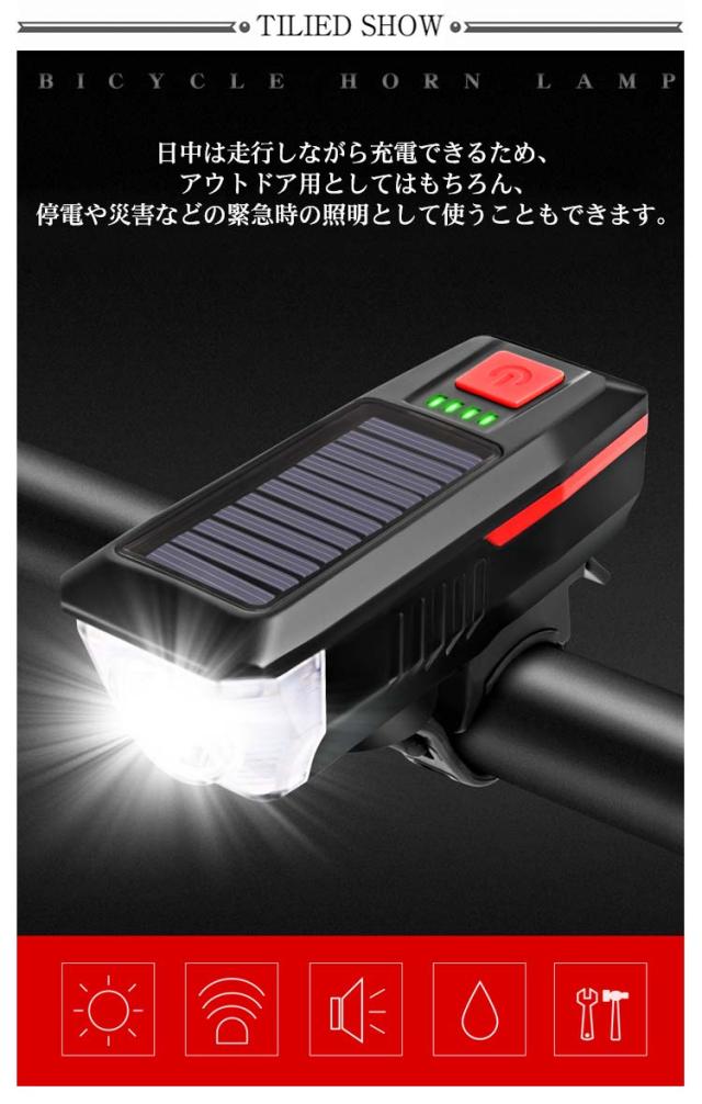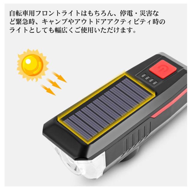 自転車ライト 取り付け簡単 マウンテンバイク 防災 LEDライト 生活防水 シリコンバンド ホーン付きソーラーライト マウンテンバイク USB充電 用品 ソーラー充電 災害時 アウトドア 停電