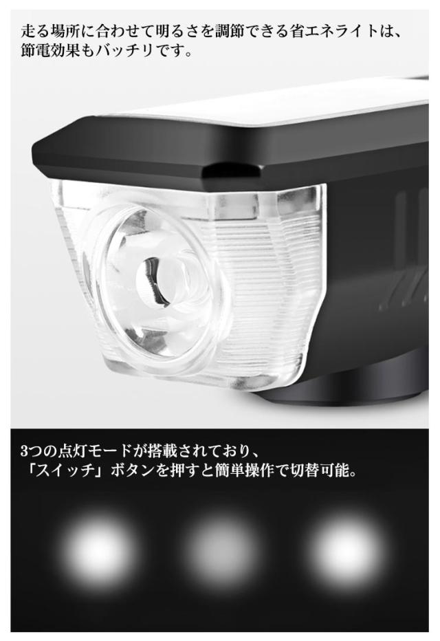 | ・USB充電とソーラー充電ができる自転車ライトです。 ・日中は走行しながら充電できるため、アウトドア用としてはもちろん、停電や災害などの緊急時の照明として使うこともできます。 ・ほとんどの車種に対応できるシリコンバンド採用で、工具なしで簡単にハンドルバーへ取り付けできます。 ・使用しない際は簡単に取り外しておくことで防犯性を高めます。 ・3つの点灯モードが搭載されており、「スイッチ」ボタンを押すと簡単操作で切替可能。 ・走る場所に合わせて明るさを調節できる省エネライトは、節電効果もバッチリです。 ・とっさの雨にも対応。日常の使用に配慮した、生活防滴仕様。 ・毎日乗る自転車に取り付ける製品だからこそ。雨天時や湿気対策として、本体部は防滴仕様としています。 (※完全防水ではありませんので、水中や強い雨、長時間濡れる場所では使用・放置しないようにしてください。) ・自転車用フロントライトはもちろん、停電・災害など緊急時、キャンプやアウトドアアクティビティ時のライトとしても幅広くご使用いただけます。 | |