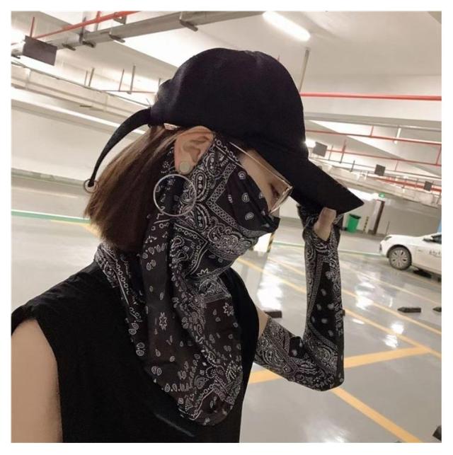 UVカット 接触冷感 アームカバー+フェイスカバーの2点セット!アームカバー ペイズリー柄 スポーツ 通勤 伸縮性 通気性 涼しい 紫外線 腕カバー ゴルフ 冷感 uv アイスシルク 日焼け対策 メンズ レディース おしゃれ