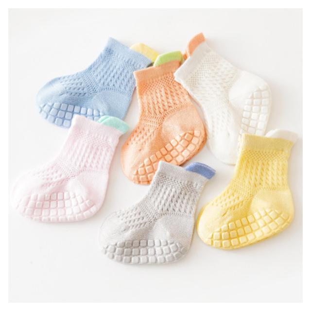 | 滑り止めが付いた赤ちゃん用メッシュソックス。 3足セット 薄手のメッシュ素材で、通気性抜群です。 綿素材で小さい赤ちゃんの肌にも優しい肌触り。 足裏に滑り止め付きで赤ちゃんの転倒をしっかり防ぎます | |