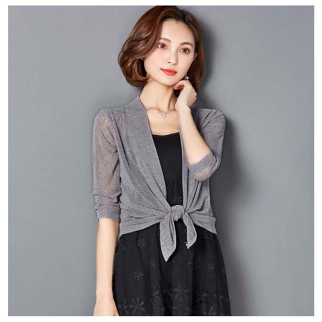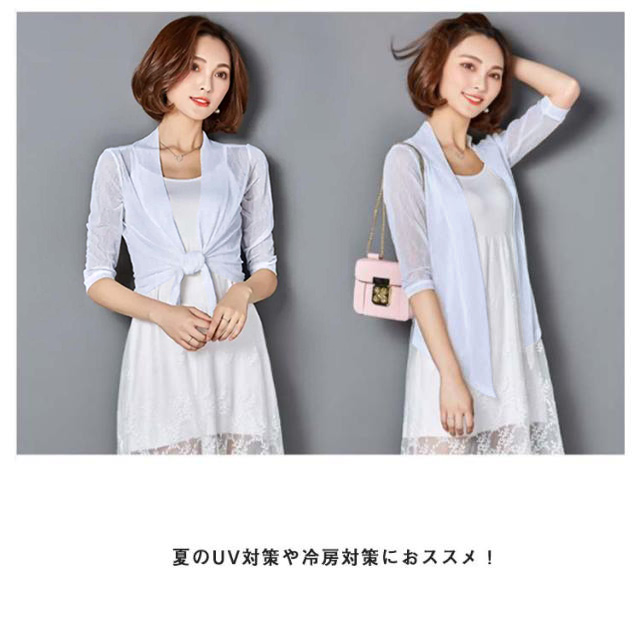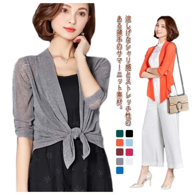 送料無料 ボレロカーディガン ショート丈 前結び レディース UV対策 ボレロ 裾しばり 冷房対策 薄手 ニットボレロ UVカット 透け感 7分袖 春夏 サマーカーディガン カーディガン