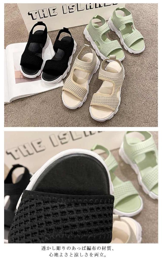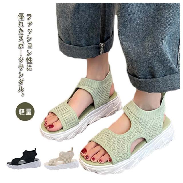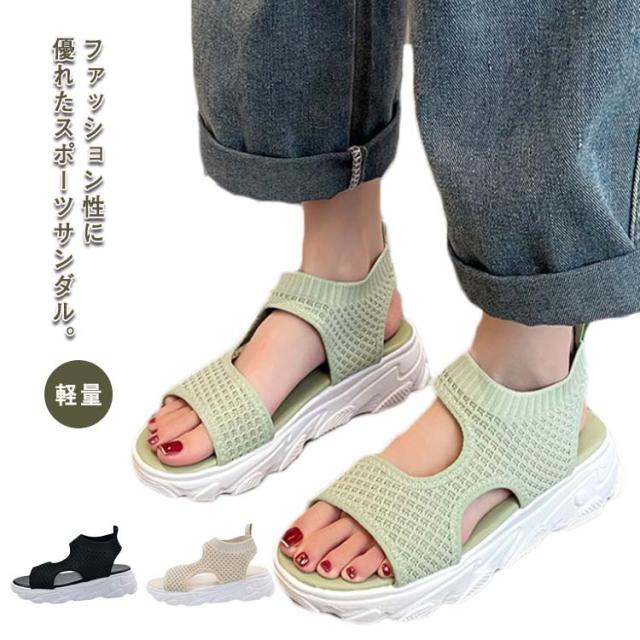厚底サンダル スポーツサンダル 22.5cm〜26.0cm シンプル 6cmヒール レディース 美脚 ビーチサンダル 軽量 メッシュ 軽い 通気性 プルストラップ ウォーキングシューズ 婦人靴 大きいサイズ スニーカー