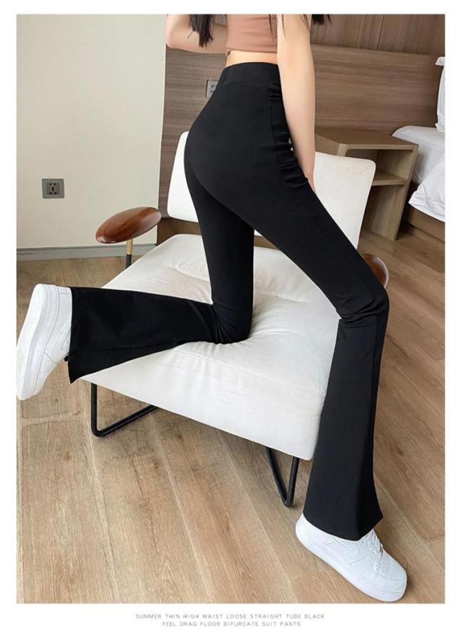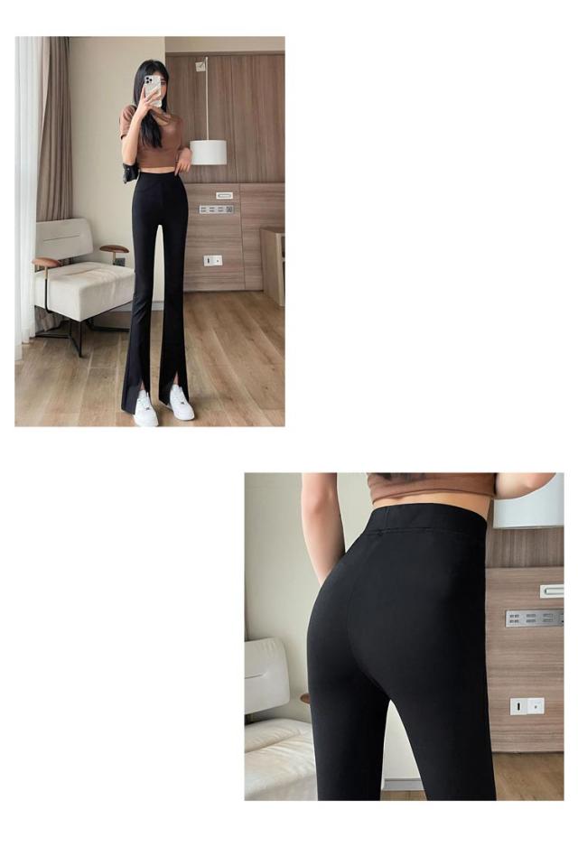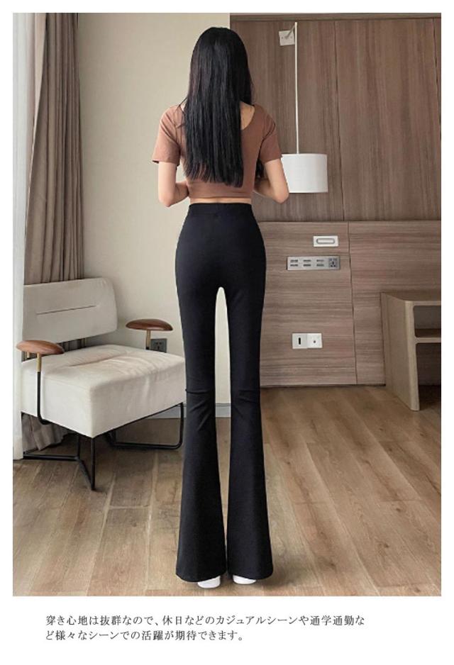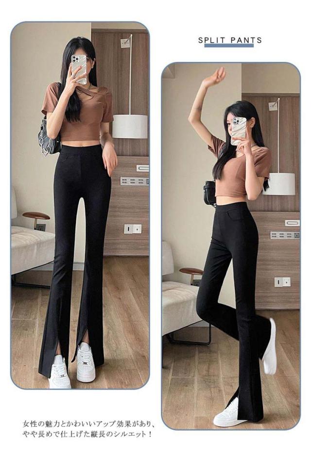 レディース ストレッチパンツ 細身 ベルボトム 裾フレア スラックス レディース スリットパンツ レギンスパンツ フレアパンツ スリム S スリット入り 脚長効果 カジュアル ハイウェストパンツ M パンツ
