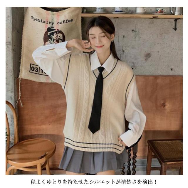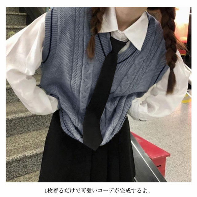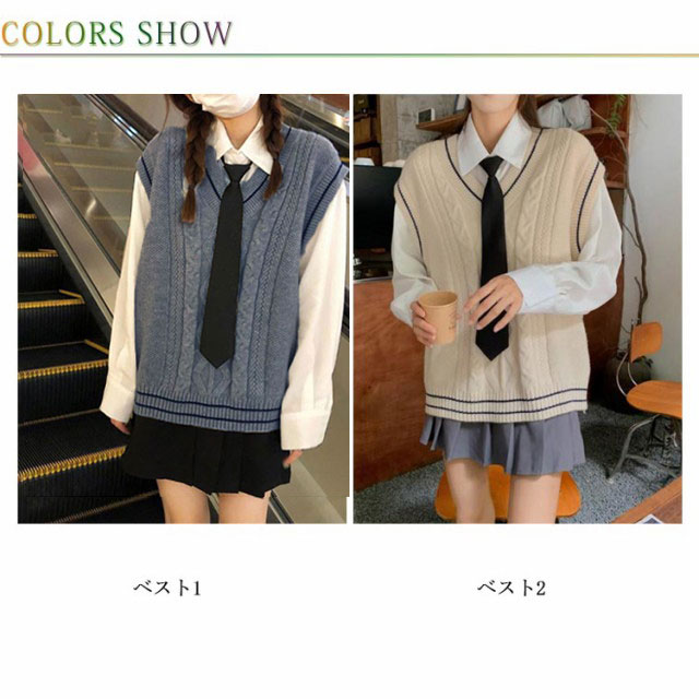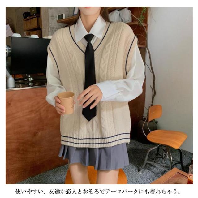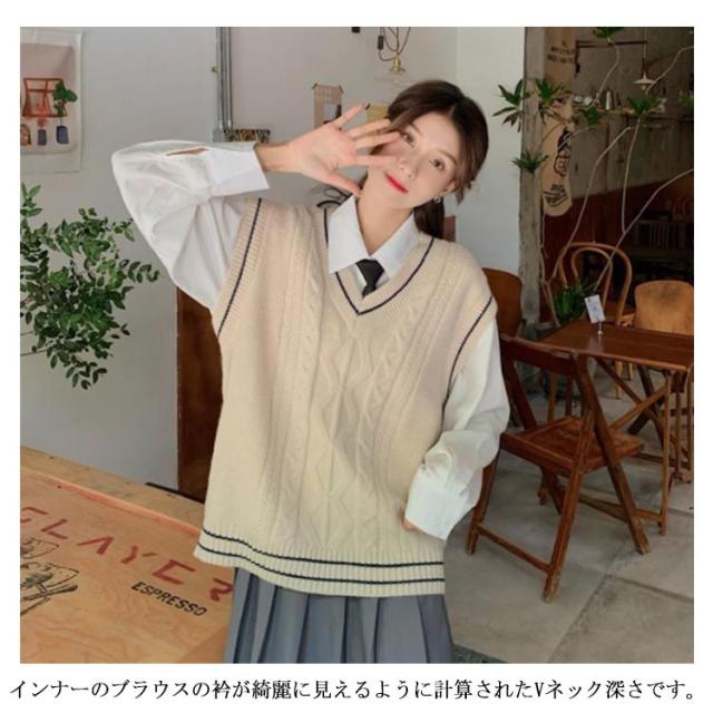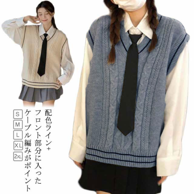 ニット XL Vネック ベスト 中学 学校 学生服 セーター JK制服 ニットベスト ノースリーブ 高校 レディース JK ケーブル編み 通学 制服ベスト 男女兼用 スクールニット レイヤード スクール S M L スクールベスト