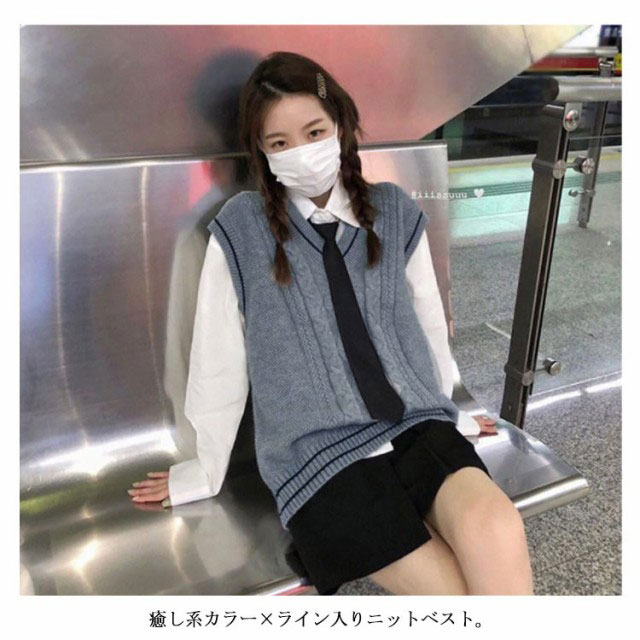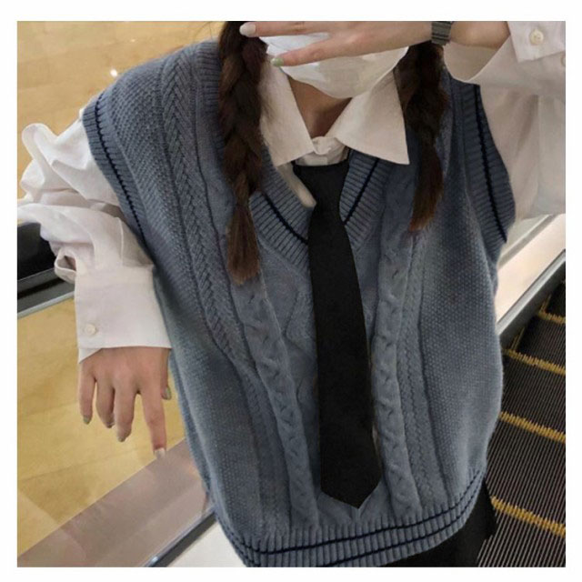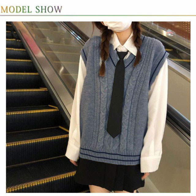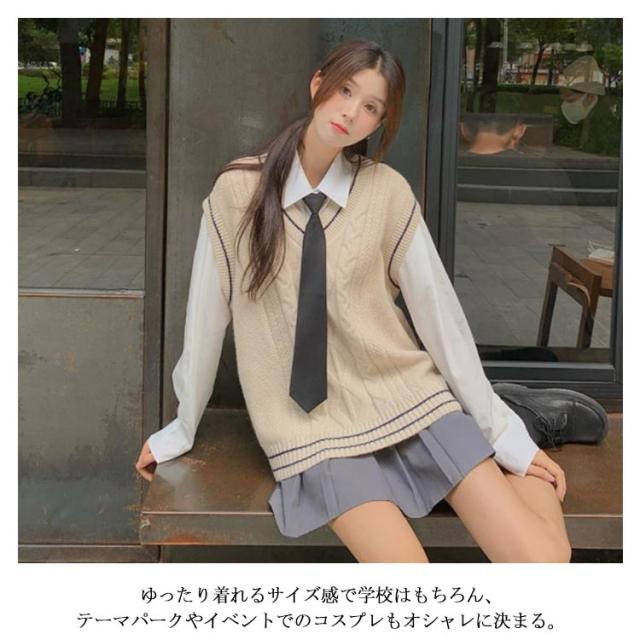 | 配色ライン+フロント部分に入ったケーブル編みがポイント 学生制服にも、なんちゃって制服にもおすすめ。 癒し系カラー×ライン入りニットベスト。 1枚着るだけで可愛いコーデが完成するよ。 インナーのブラウスの衿が綺麗に見えるように計算されたVネック深さです。 程よくゆとりを持たせたシルエットが清楚さを演出! 使いやすい、友達か恋人とおそろでテーマパークにも着れちゃう。 ゆったり着れるサイズ感で学校はもちろん、テーマパークやイベントでのコスプレもオシャレに決まる。 | |