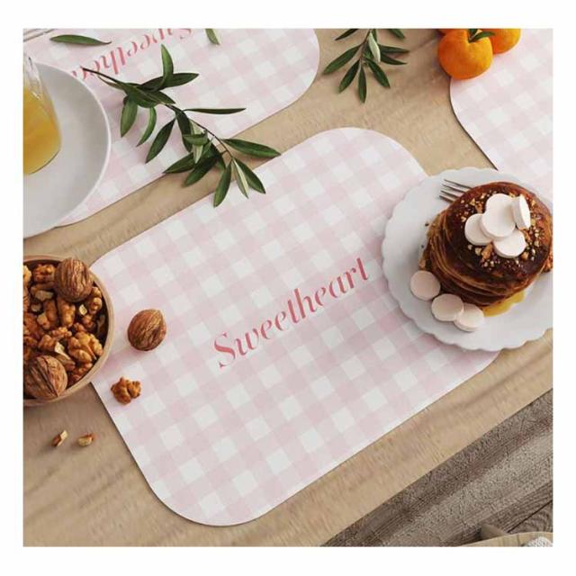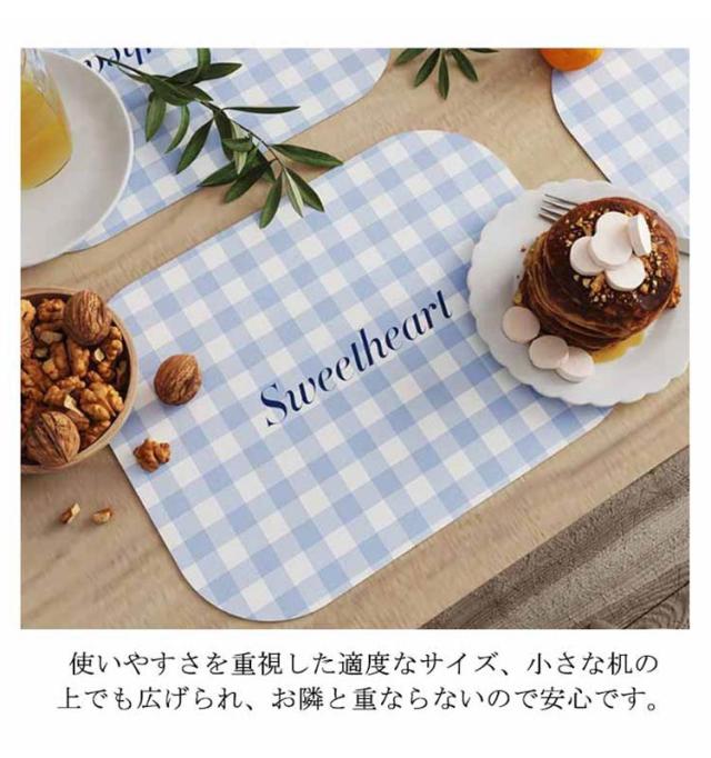 | チェック柄が可愛いランチョンマット。お食事も楽しくなる♪ 幼稚園、保育園、小学校の他、ご家庭でも!テーブルの汚れや傷を防いでくれます。 たたんだり持ち歩く際にかさばらない一枚仕立て。薄いので、お洗濯の際に乾きやすいのもポイント。 使いやすさを重視した適度なサイズ、小さな机の上でも広げられ、お隣と重ならないので安心です。 食べこぼしもさっとふけて、かわいく便利なランチョンマット。 | |