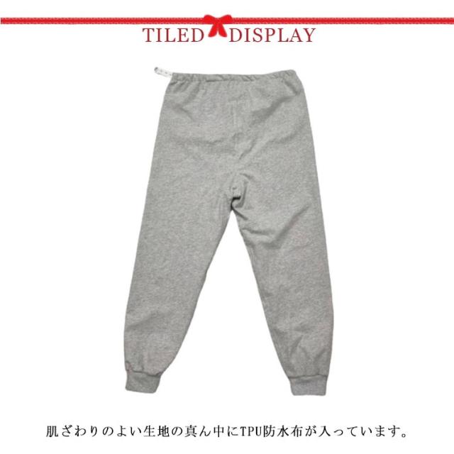 | 大人用の防水布付き長ズボンです。 肌ざわりのよい生地の真ん中にTPU防水布が入っています。 表地も裏地も肌触りの良い綿素材コットン素材を使用し、通気性に優れているのでムレを気になりません。 夜のモレ対策をしても心配でお困りの方におすすめ。 生理中でシーツをよごしそうな多い日や、雨などに濡れたくない日などにも役立ちます。 | |