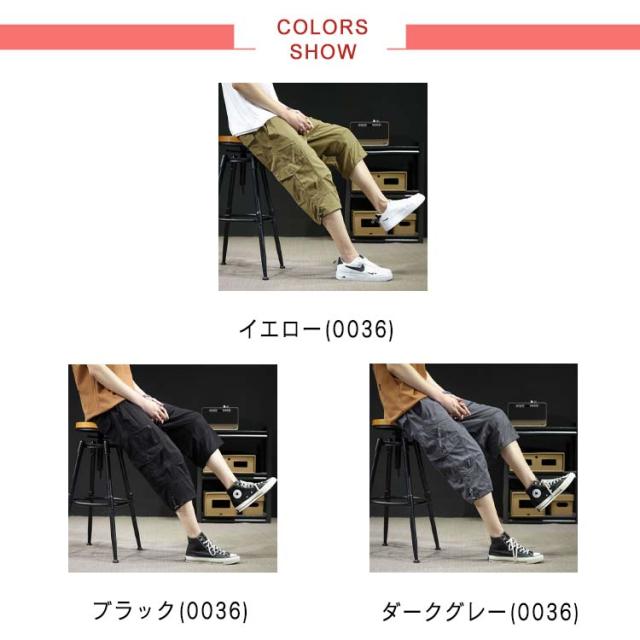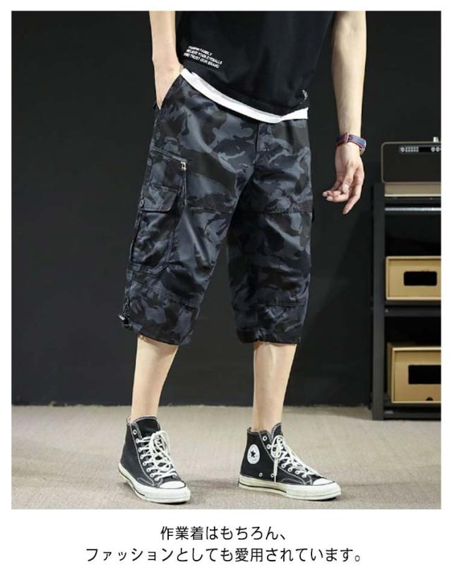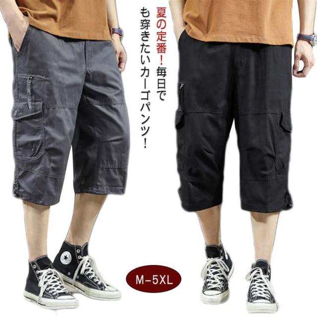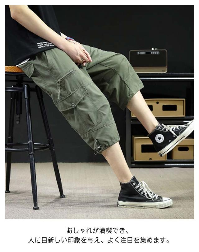 おしゃれ クロップド カーゴパンツ 大きいサイズ チノパン 迷彩柄 送料無料 7分丈 イージパンツ 無地 春夏 ウエストゴム 無地 作業着 作業ズボン ゴルフ お洒落 メンズ