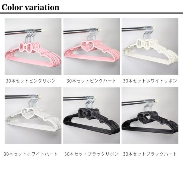 | 【30本セット】 【かわいいハート/リボンのすべらないハンガー】 滑り止め特殊加工、衣類をしっかりキャッチ! 一般的なハンガーに比べ相当薄く作られており、 クローゼットの中は、かさばらずスッキリ♪ | |
