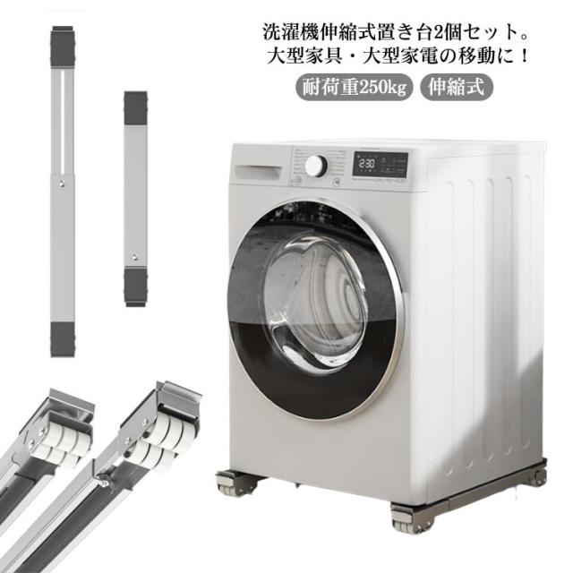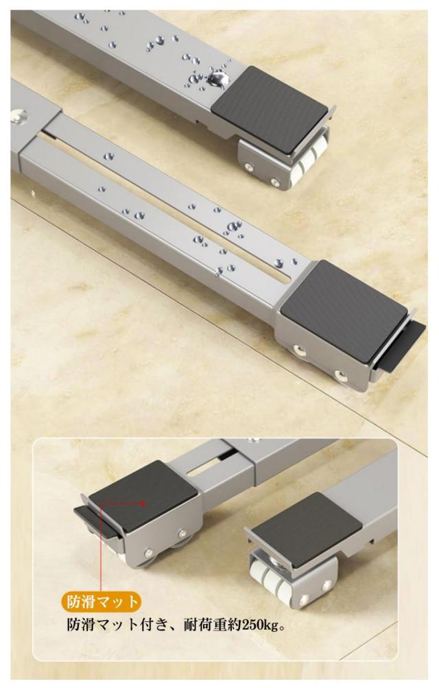 洗濯機スライド台 かさ上げ台 置き台 冷蔵庫 耐荷重250kg 家具 移動 キャスター 洗濯機 キャスター台 洗濯機 調節可能 滑り止めマット ドラム式洗濯機 ランドリーラック ラック 伸縮式 伸縮式 大型家具 家電 運搬用 ローラーキャリー 2個セット