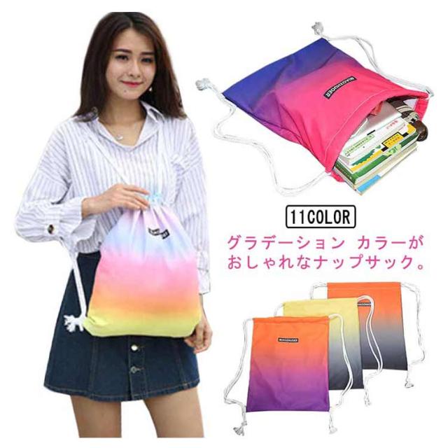 | グラデーション カラーがおしゃれなナップサック。 フィットネスにはもちろん、シンプル・カジュアル・ストリートコーデにも相性抜群なジムサック。 また、お子様の部活・習い事・体操着入れにもおすすめ! 開口部が大きく開き、巾着状にキュッと絞れるので荷物をたっぷり入れられます。 大人から子供まで、好きなカラーでお使いいただけます! | |