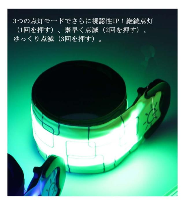 | 夜のランニングやお散歩を安全にする充電式のLEDライトベルト。 USB充電可能!(充電ケーブル付属) 3つの光モード!選べる点灯モード。3つの点灯モードでさらに視認性UP!継続点灯(1回を押す)、素早く点滅(2回を押す)、ゆっくり点滅(3回を押す)。 たった1秒!瞬間着脱!パチンッ!と、どんな部位にも簡単装着!着けたいところにパチン!クルっと巻き付きます。 着けているのを忘れる軽さ! | |