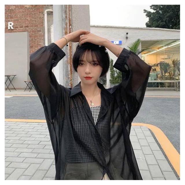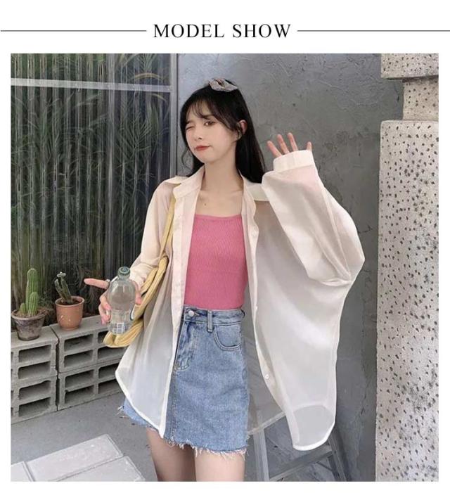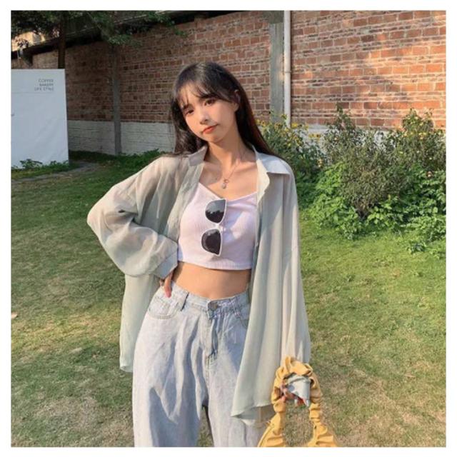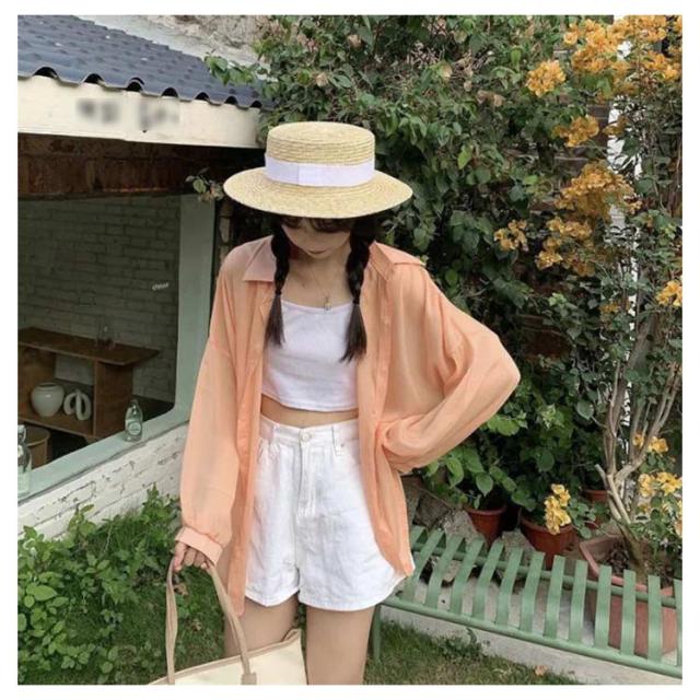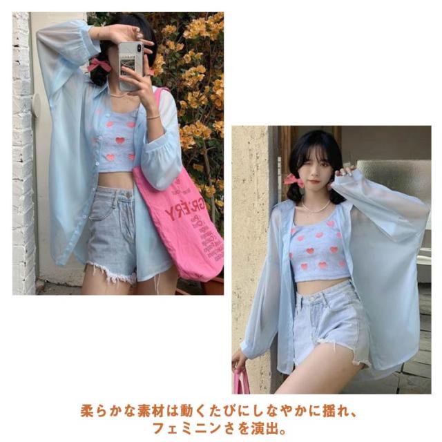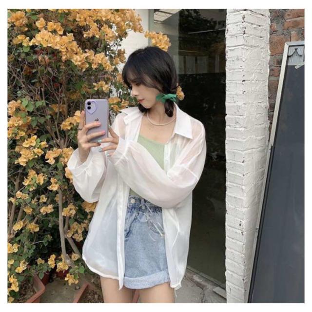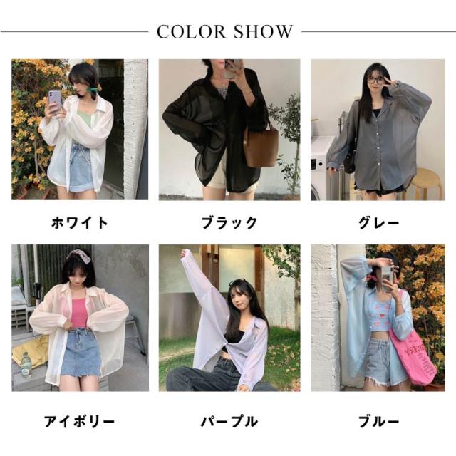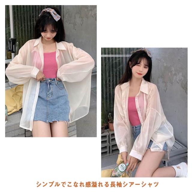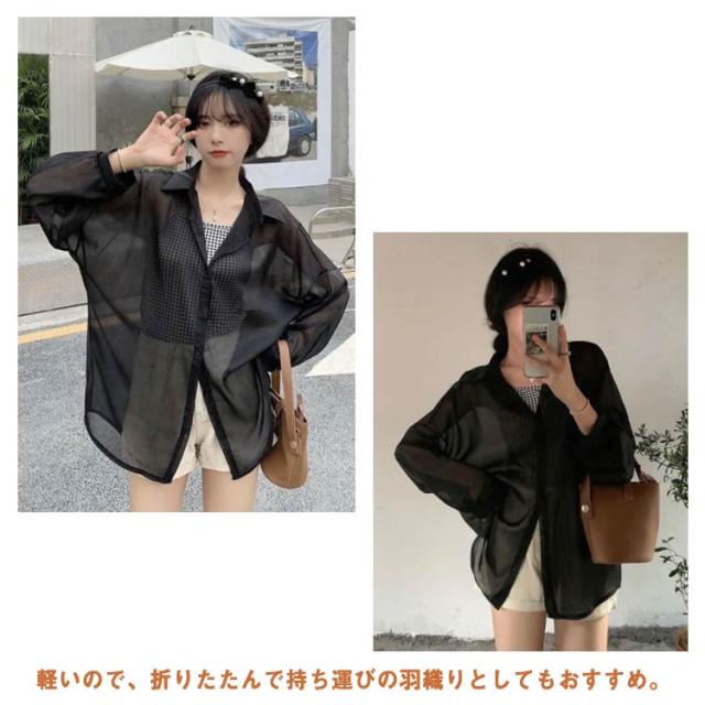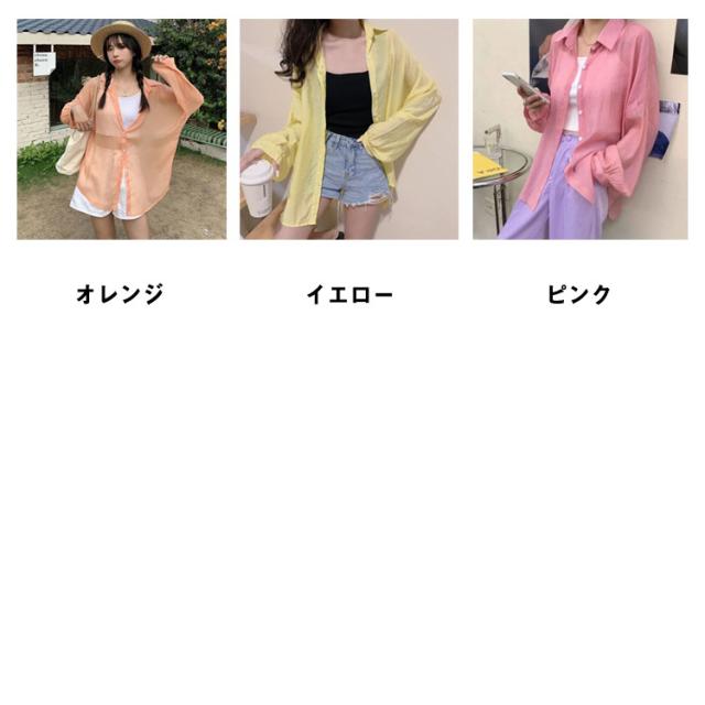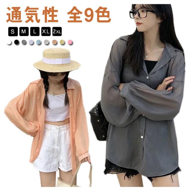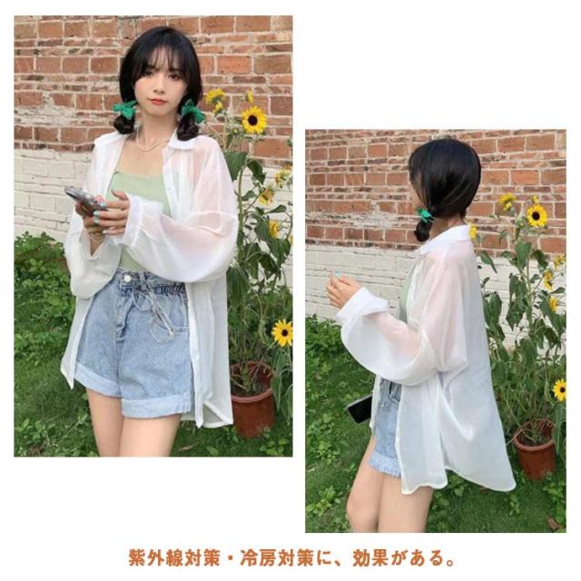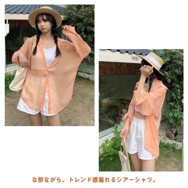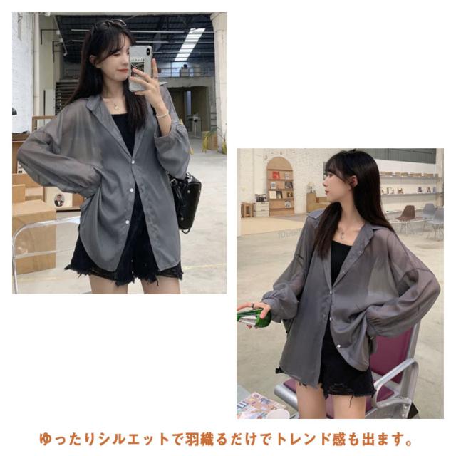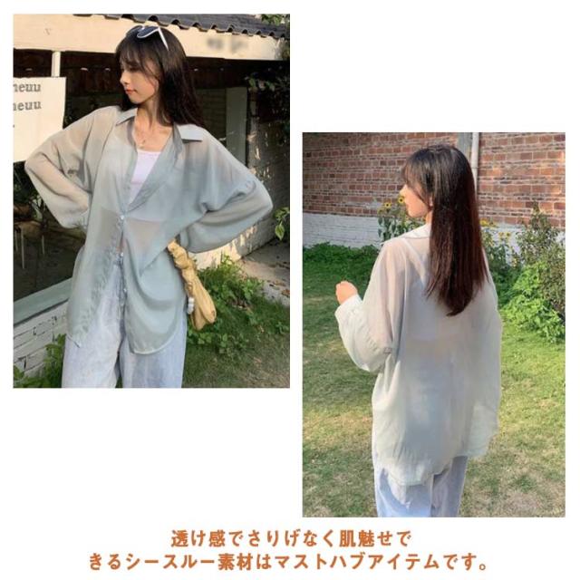 | シンプルでこなれ感溢れる長袖シアーシャツ【全9色】【S M L XL】 な形ながら、トレンド感溢れるシアーシャツ。 紫外線対策・冷房対策に、効果がある。 透け感でさりげなく肌魅せできるシースルー素材はマストハブアイテムです。 ゆったりシルエットで羽織るだけでトレンド感も出ます。 柔らかな素材は動くたびにしなやかに揺れ、フェミニンさを演出。 軽いので、折りたたんで持ち運びの羽織りとしてもおすすめ。 | |