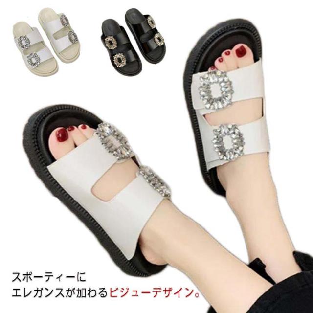 スポーツサンダル 疲れない スポーツサンダル サンダル コンフォートサンダル 歩きやすい 厚底 おしゃれ スリッパ 約4cmヒール レディース 痛くない シューズ フラットサンダル 海 水遊び 韓国 軽量 ビジュー