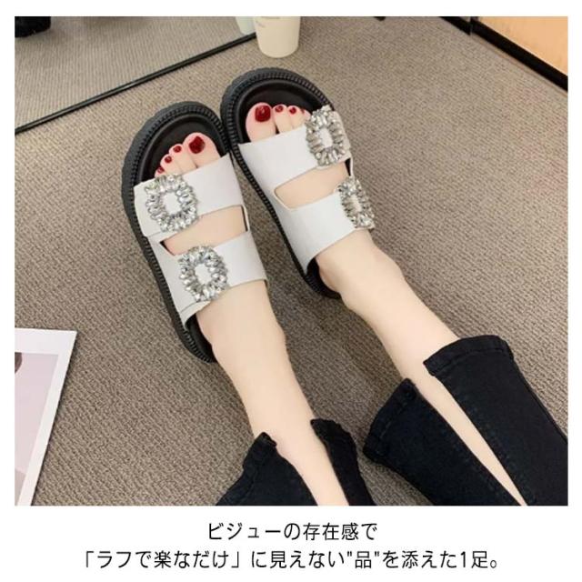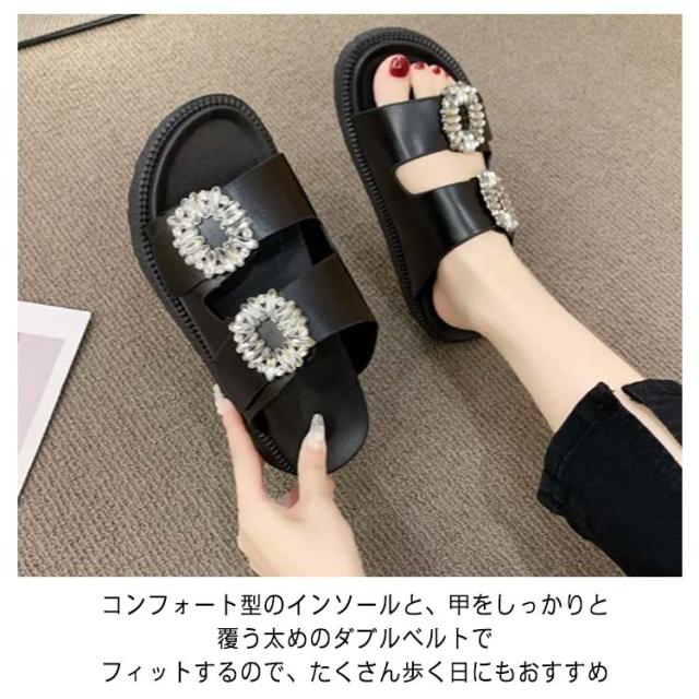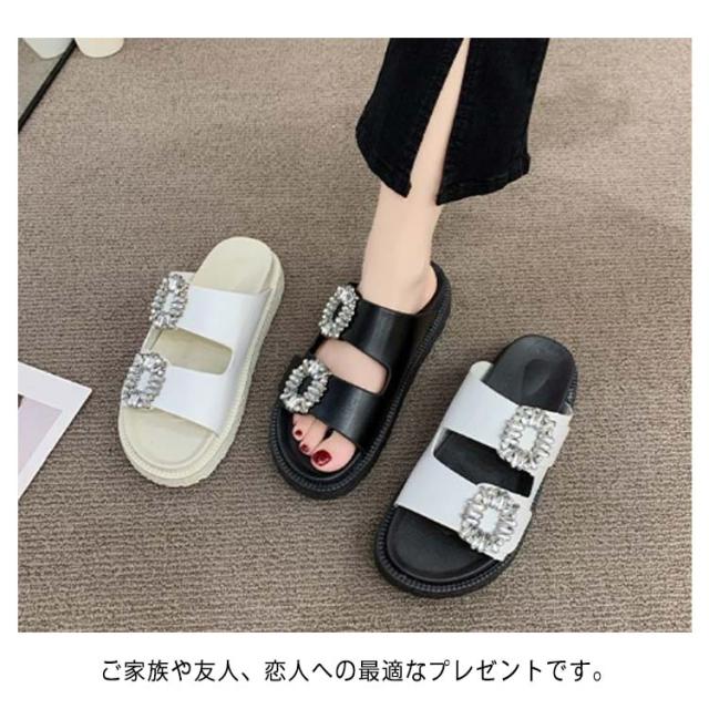 | スポーティーにエレガンスが加わるビジューデザイン。 ビジューの存在感で「ラフで楽なだけ」に見えない"品"を添えた1足。 サンダルのアーパーは肌に優しい素材を採用して、肌触りがよくて清潔にも簡単です。 スリッパ感覚でさっと履けるミュールタイプでお出かけにぴったりのアイテム。 コンフォート型のインソールと、甲をしっかりと覆う太めのダブルベルトでフィットするので、たくさん歩く日にもおすすめ 滑り止め柄が付いていて、防滑性を高めて、耐摩擦性も優れて、滑りやすいところでも滑りにくいです。 ご家族や友人、恋人への最適なプレゼントです。 | |