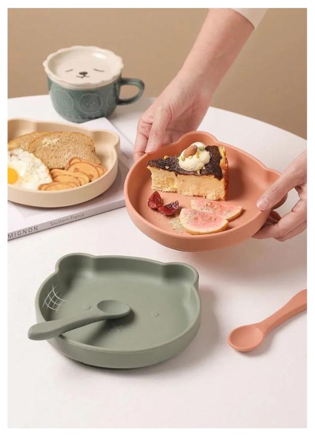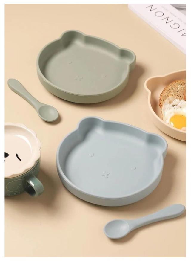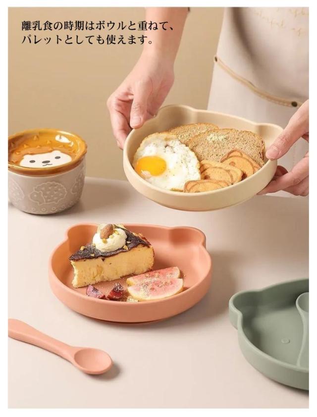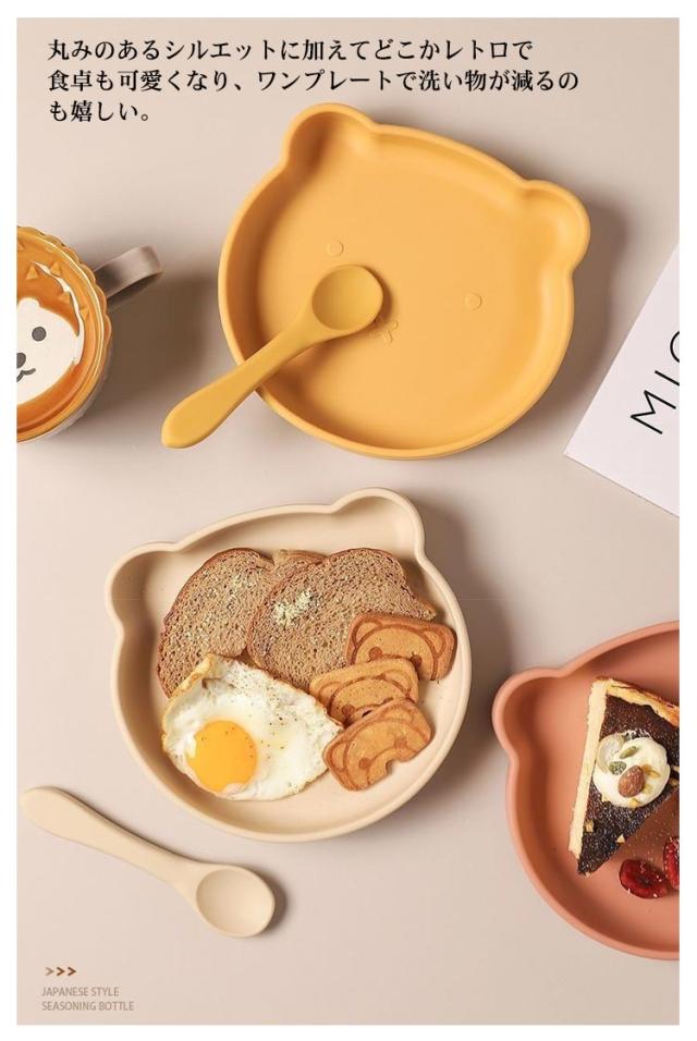 シリコンプレート 子供用食器 ベビー食器 すくいやすい プレート おしゃれ 赤ちゃん用 お食い初め つかみ食べ スプーン付き 離乳食 ベビー用 食器セット やわらか素材 かわいい カラバリ ランチ皿