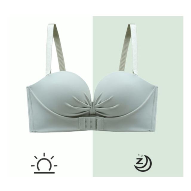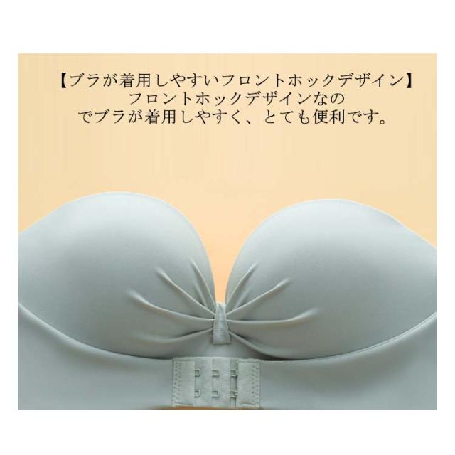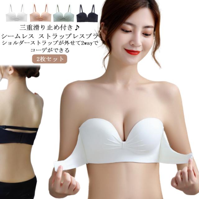 | 2枚セット!【三重滑り止め付き♪シームレス ストラップレスブラ】フロントホックなので着用しやすく、バストをしっかりサポートします。滑り止めが三重もあり、幅も広めなのでしっかりホールドします。 【ショルダーストラップが外せて2wayでコーデができる】ショルダーストラップが外せるので、チューブトップとして使用したり普通のブラとして着用できます。コーデによって使い分けができて便利です。 【ノンワイヤータイプなので締め付け感無し】ノンワイヤータイプなので締め付け感が無く、息苦しさを感じにくいです。伸縮性抜群で柔らかい素材を使用しているため、あとが付きにくく快適です。 【ブラが着用しやすいフロントホックデザイン】フロントホックデザインなのでブラが着用しやすく、とても便利です。 【肩紐は後ろの補助ベルトとしても利用可能】肩紐はオフショルダー着用の際、後ろの補助ベルトとしても利用できます。肩紐を補助ベルトとして利用すると、腕をあげてもずれにくく快適です。注意:肩紐と補助ベルトは兼用になっておりますので、ご了承下さい。 【両側のサイドにはシリコン製の滑り止め付き】サイドには滑り止めが付いているので、腕をあげてもしっかりバストにフィットします。 【厚手パッドで簡単にバストアップ】厚手パッドで簡単にバストアップができます。立体構造で包み込むようにバストをホールドして、美しくバストを魅せます。 【色んなトップスに合わせやすいデザイン】胸元や背中の開いたドレスや下着のストラップを見せたくないトップスに着用等様々な場面で着用できます。日常にはもちろん、結婚式やパーティーなど幅広いシーンでも着用できます。 | |