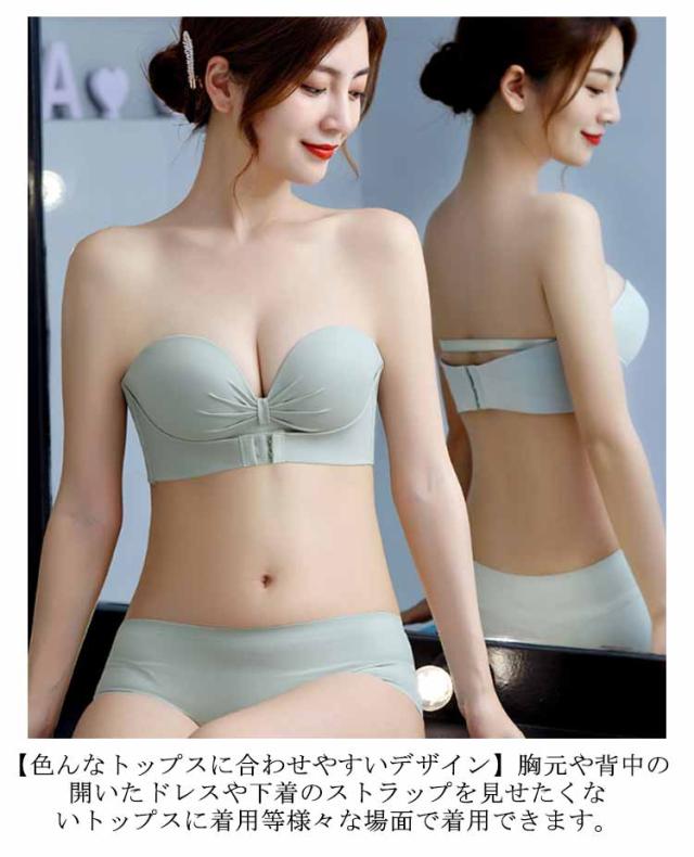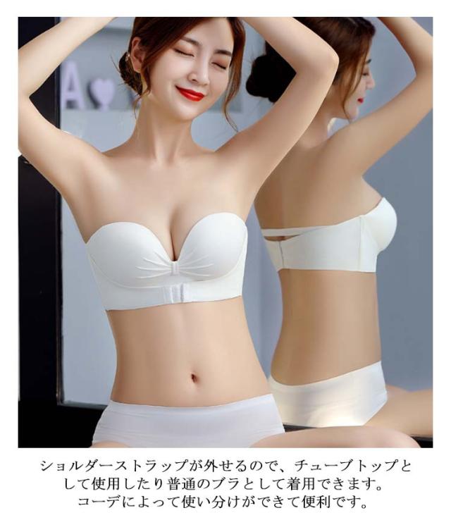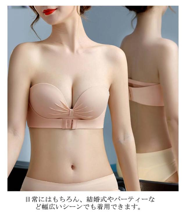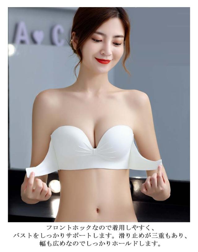 ブラ チューブトップ 落ちない 2枚セット!ストラップレスブラ フロントホック シームレス ずれない バストアップ 結婚式 育乳 おしゃれ ノンワイヤー ブラ 肩紐なし 谷間 脇高 可愛い ブラジャー ドレス オフショルダー インナー ブラジャー 寄せブラ ストラップレス