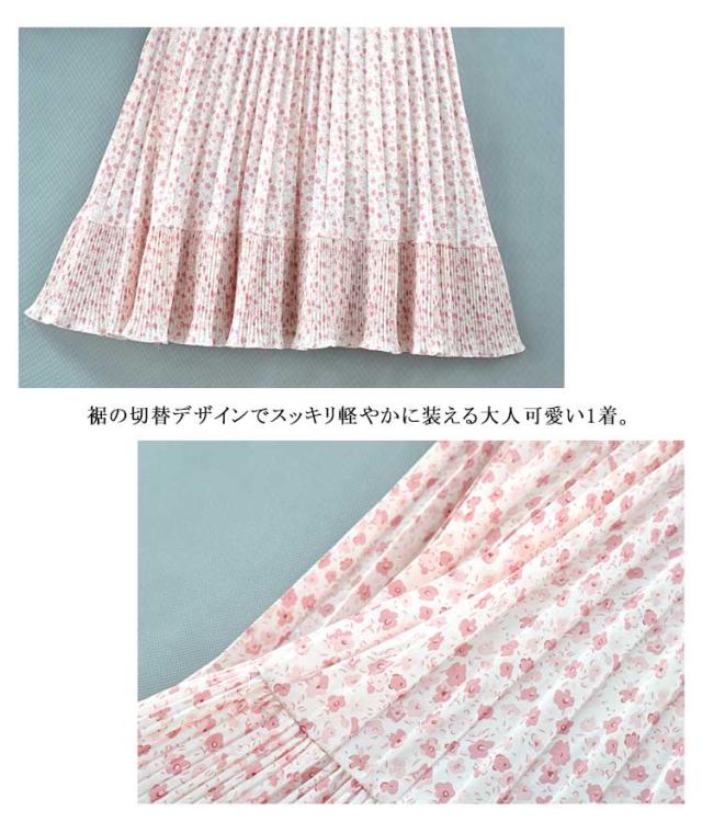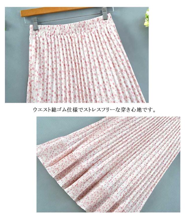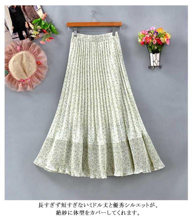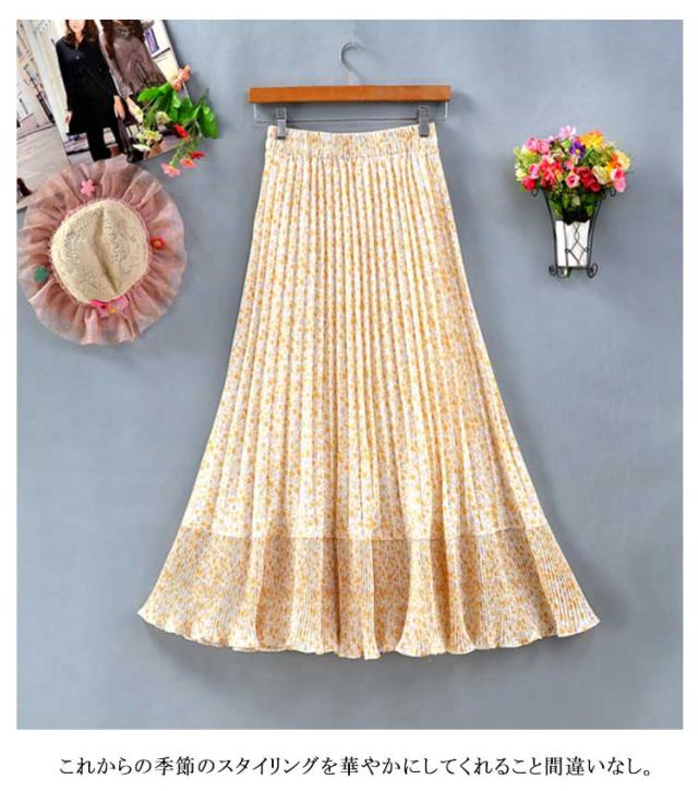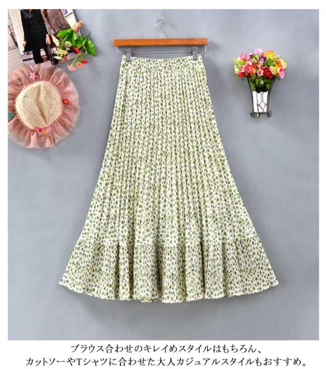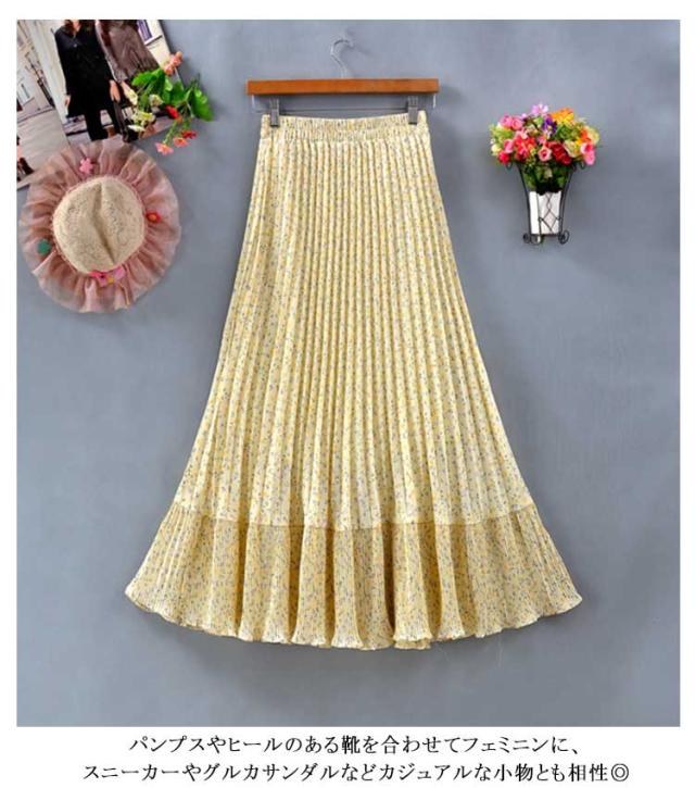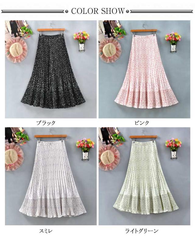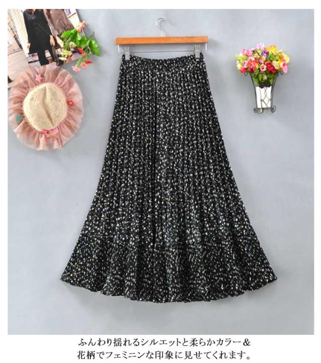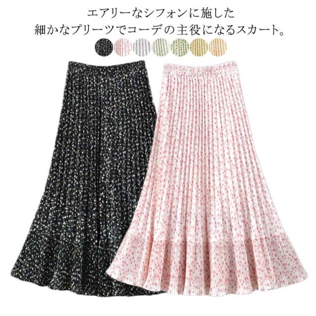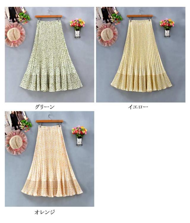 裏地あり 花柄 ロング丈 切り替え プリーツスカート フレアスカート 裾切替デザイン シフォン フリーサイズ 春 スカート