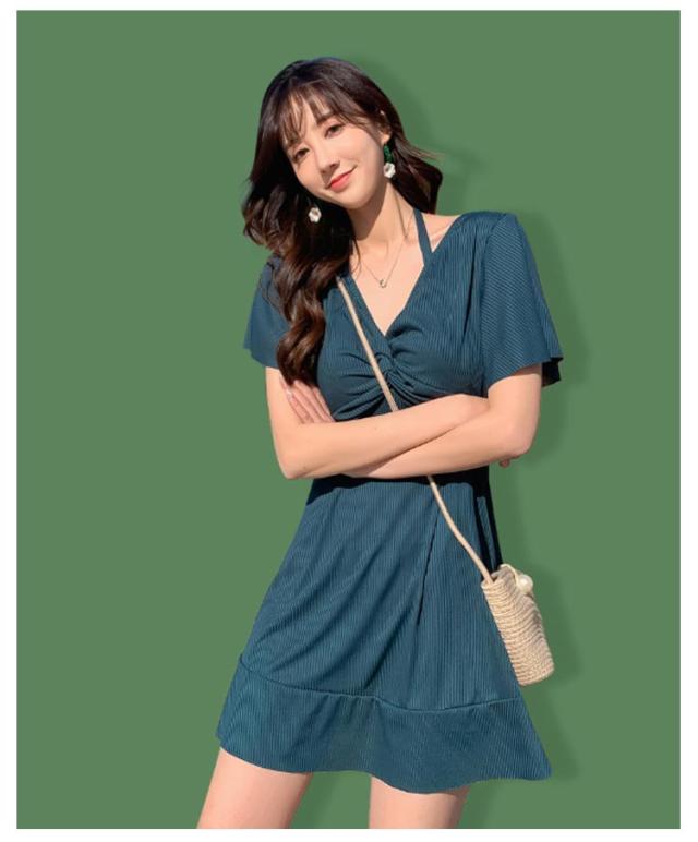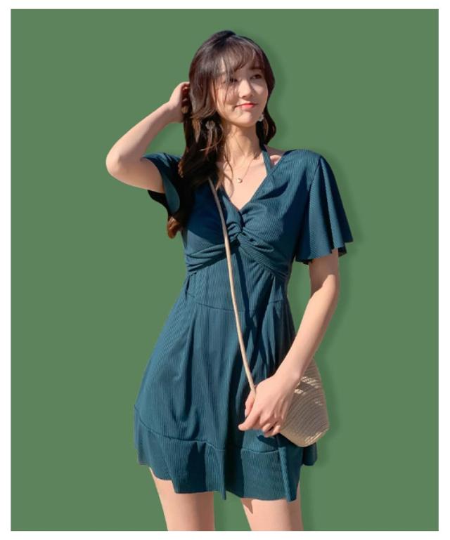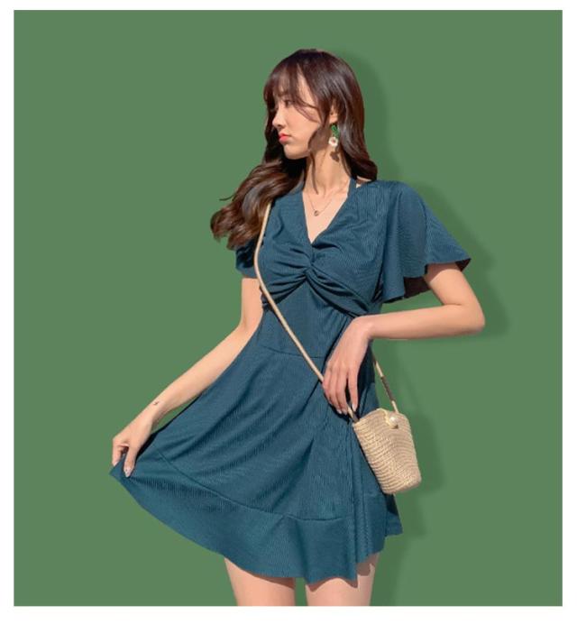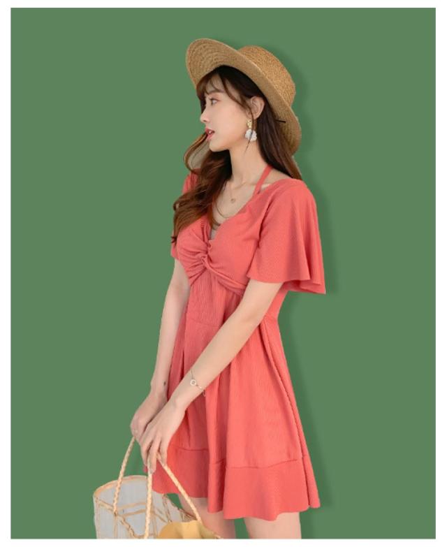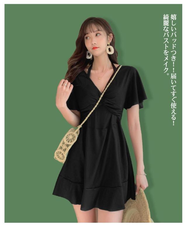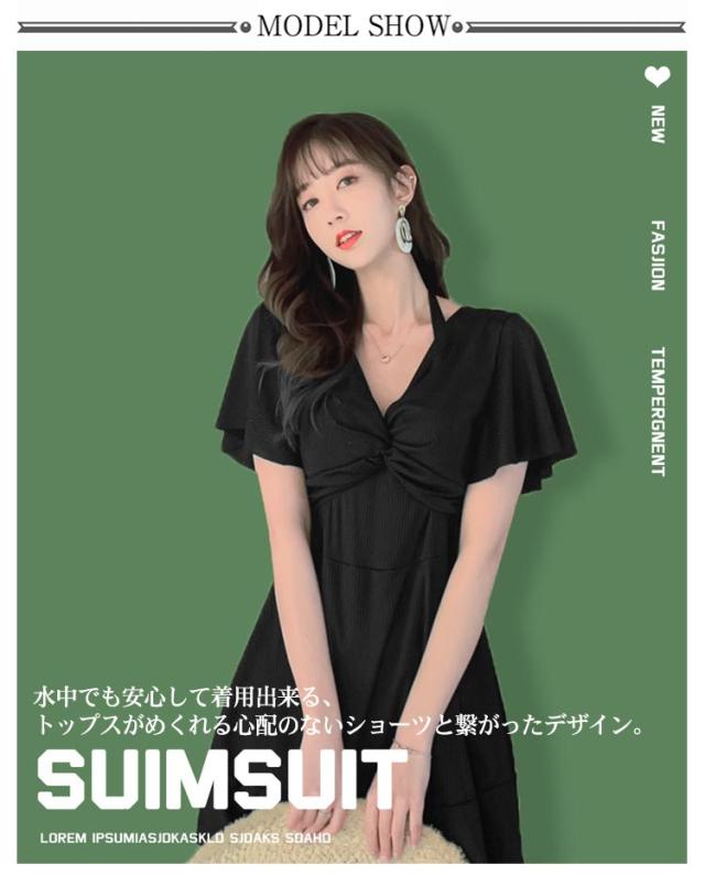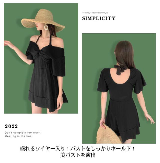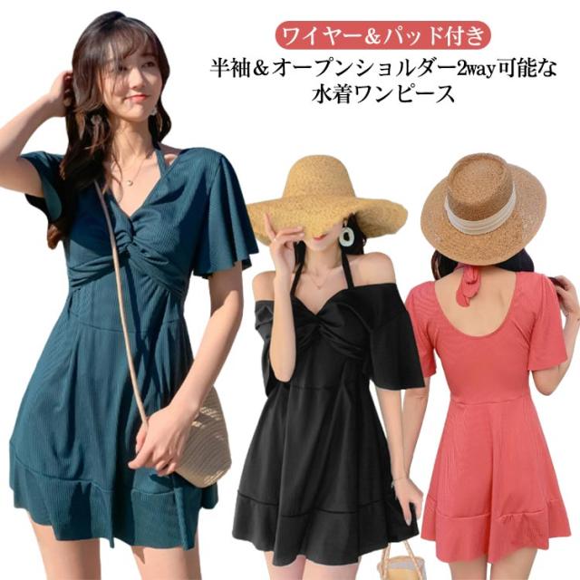 ワンピース カバーアップ Vネック カバーアップ 2way 半袖 水着 オールインワン ママ水着 体型カバー ワイヤー入り お腹 ハイウエスト 二の腕 レディース お尻 太もも Aライン 露出控えめ 女性 水陸両用 水着 20代 30代 40代 オープンショルダー
