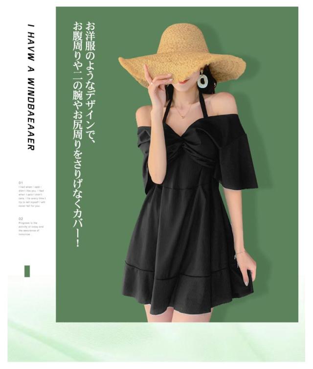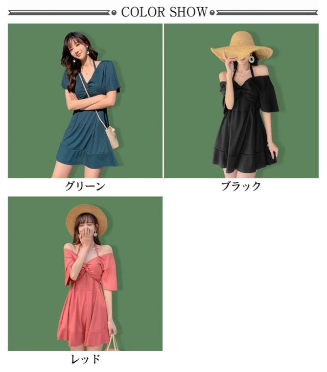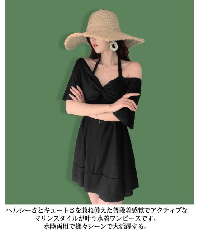 | 半袖&オープンショルダー2way可能な水着ワンピース。【ワイヤー&パッド付き】 水中でも安心して着用出来る、トップスがめくれる心配のないショーツと繋がったデザイン。 お洋服のようなデザインで、お腹周りや二の腕やお尻周りをさりげなくカバー! 嬉しいパッドつき!!届いてすぐ使える!綺麗なバストをメイク。 盛れるワイヤー入り!バストをしっかりホールド!美バストを演出 ヘルシーさとキュートさを兼ね備えた普段着感覚でアクティブなマリンスタイルが叶う水着ワンピースです。水陸両用で様々シーンで大活躍する。 | |