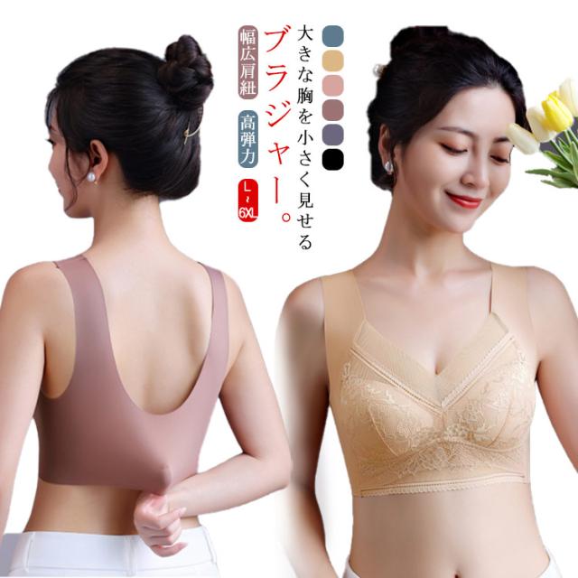 設計 小さく見せるブラ 送料無料 ナイトブラ 背中 フルカップ アンダー 胸を小さく見せるブラ 快適 スッキリ 脇高 脇肉 補正 補正下着 胸を抑えるブラ 薄内蔵パッド 大きいサイズ ブラジャー レース 幅広肩紐 胸が小さく見えるブラ