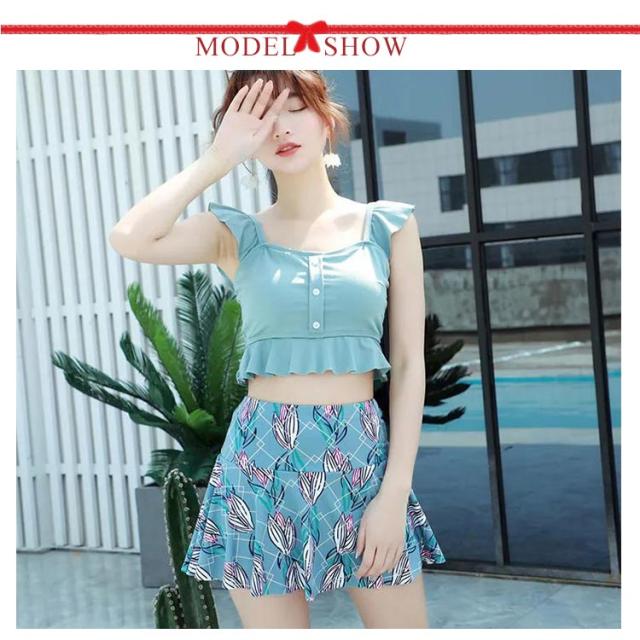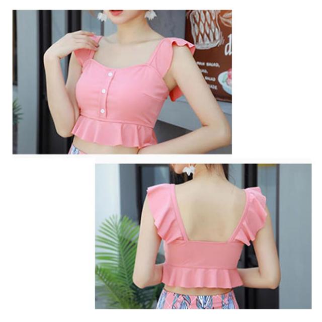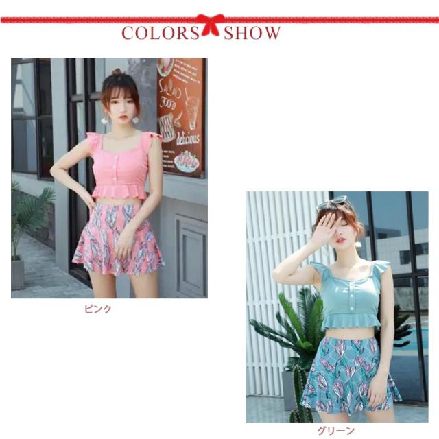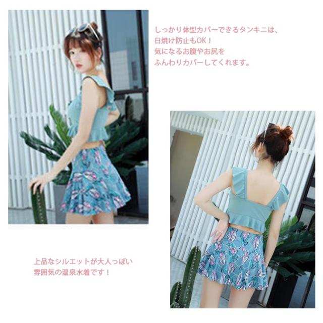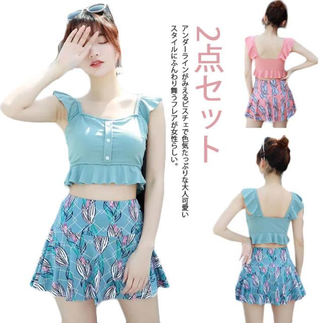 ビスチェ風 総柄 体型カバー水着 レディース 水着 セクシー 2点セット バックフリル ビキニ おしゃれ セパレート パッド一体型 ワイヤー入り かわいい 40代 カバーアップ お尻 太もも ハイウエスト 露出控えめ ママ水着 20代 30代 無地
