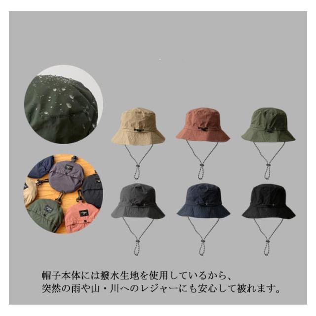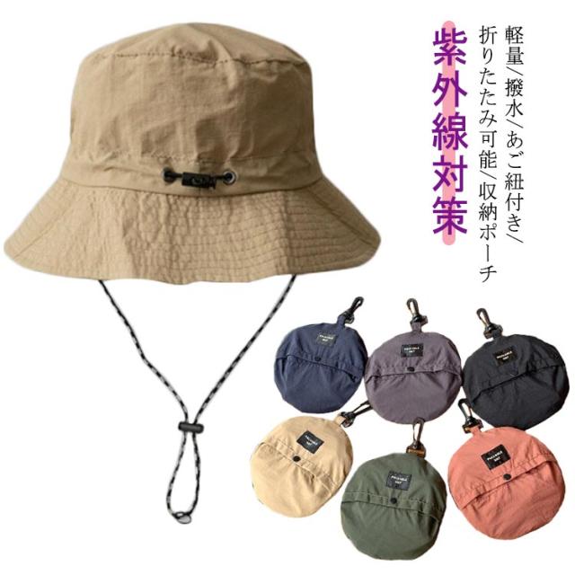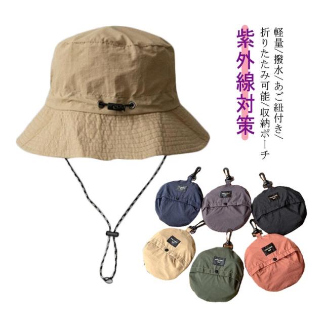 UVケア 帽子 【収納ポーチ付き】 バケハ 超コンパクト アウトドア 紐つき 防水生地 折り畳み レディース メンズ 撥水 UV バケットハット UVカット 紫外線防止 UVケア お洒落 日よけ 紫外線対策 自転車 風に飛ばない ギフト 父の日 キャンプ