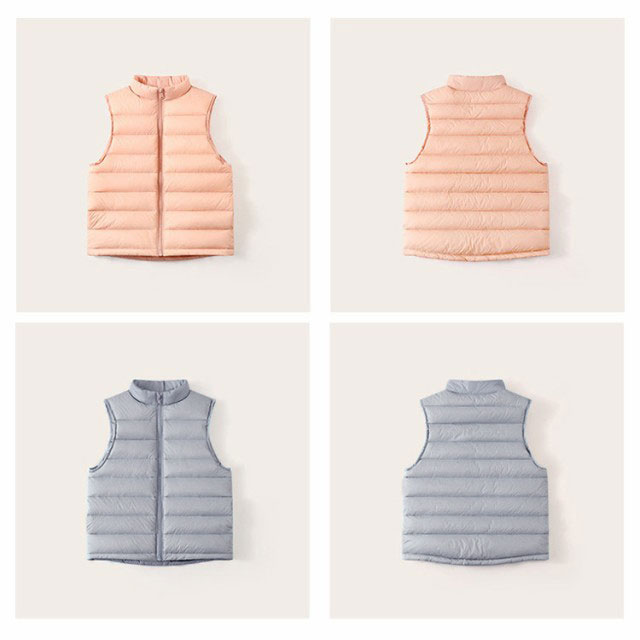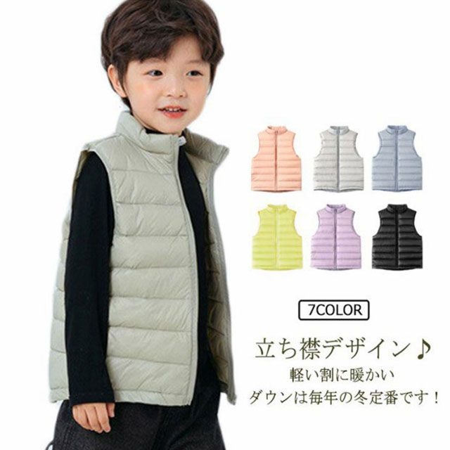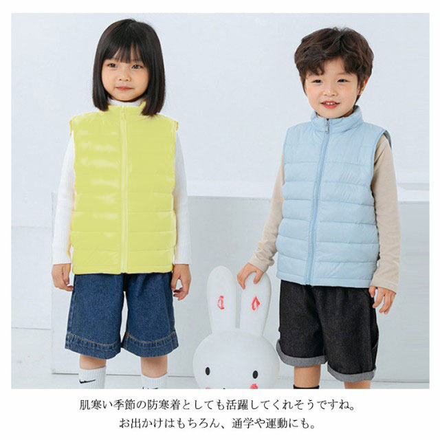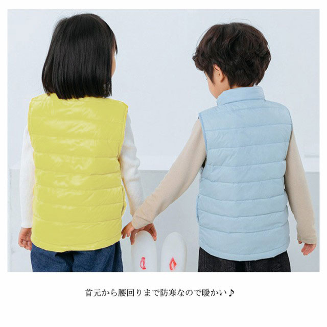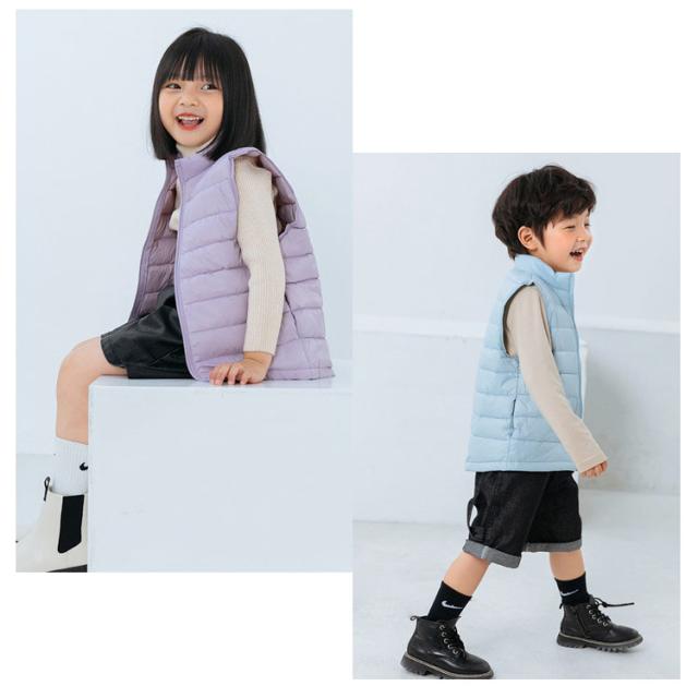 送料無料 ベスト キッズ ダウンベスト 子供服 男の子 女の子 キッズ キルトベスト アウター 立ち襟 前開き チョッキ ジレ おしゃれ ライナー 秋冬春 薄手 防寒保温 軽量 ジュニア 無地 定番