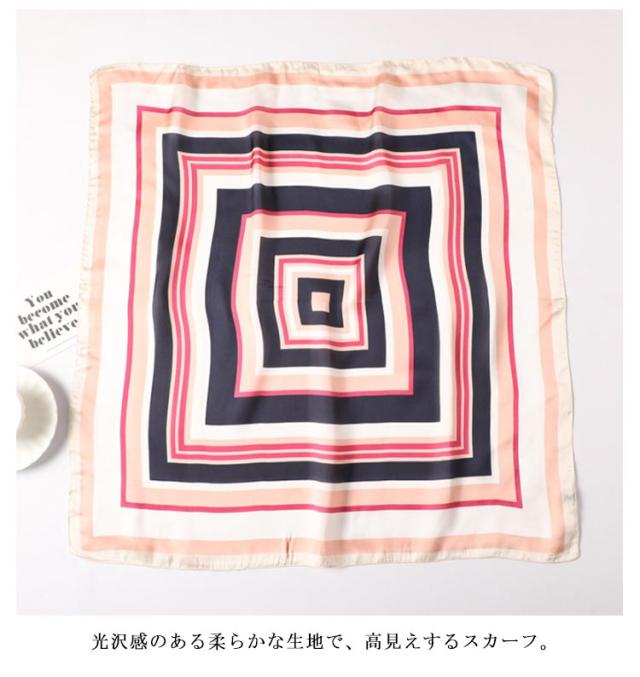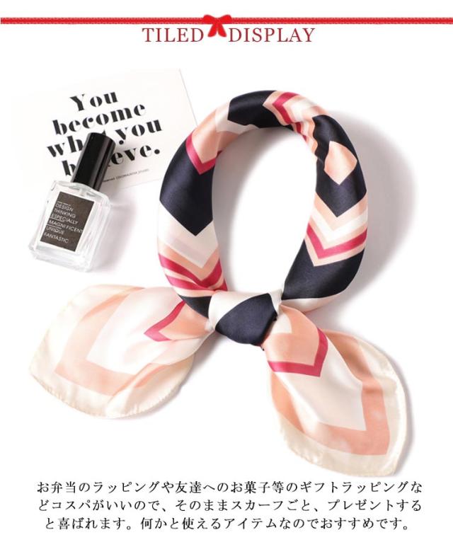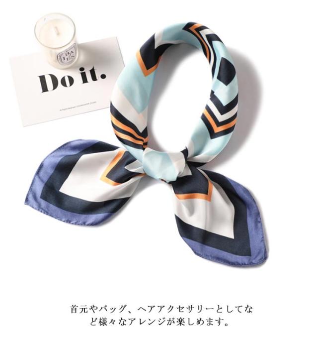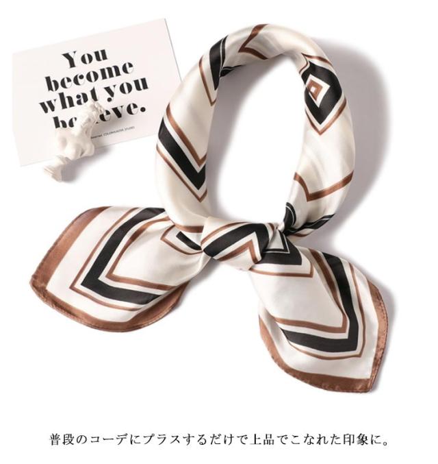 | デイリー使いしやすい大判サイズのスカーフ 光沢感のある柔らかな生地で、高見えするスカーフ。 普段のコーデにプラスするだけで上品でこなれた印象に。 首元やバッグ、ヘアアクセサリーとしてなど様々なアレンジが楽しめます。 お弁当のラッピングや友達へのお菓子等のギフトラッピングなどコスパがいいので、そのままスカーフごと、プレゼントすると喜ばれます。何かと使えるアイテムなのでおすすめです。 ◇コーディネート◇ シンプルコーデとの相性抜群な、巻くだけでこなれ感たっぷりなスタイルを演出できるアイテム。 ヘアアクセサリーやバッグアクセサリーとしてなど幅広いアイテムとのアレンジが楽しめます。 | |