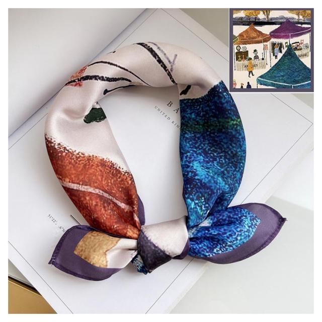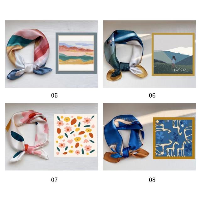 送料無料 スカーフ 正方形 総柄 お弁当 ハンカチ バッグチャーム バッグスカーフ レディース ヘアアクセサリー インスタ映え ins ヘアアクセ アクセサリー レトロ バンダナ ハンカチ 薄手 オフィス 通勤 雑貨 小物 カジュアル 母の日 プレゼント ギフト