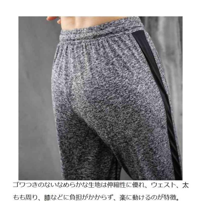 | ジムに最適なスポーツ用パンツ! ゴワつきのないなめらかな生地は伸縮性に優れ、ウェスト、太もも周り、膝などに負担がかからず、楽に動けるのが特徴。 立ったり座ったりがとても楽ちん♪ ウエストはゴム仕様で調節可能な紐が付いてます。 足首周りもストレッチで柔らかく脱ぎ履きするときも楽ちん? 裾リブは下半身を細身のシルエットへと引き締め、サイドラインが強調され、脚長効果が期待できます。 | |