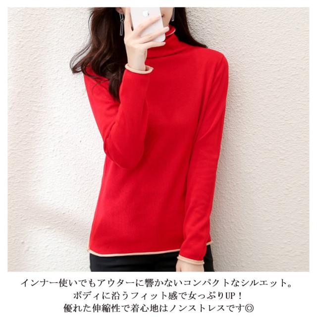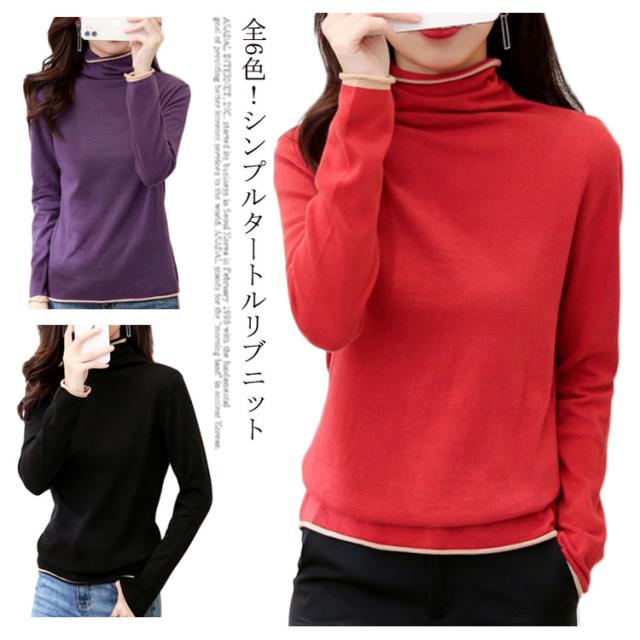 タートルネック コットン ニット トップス レディース 長袖 セーター 綿 プルオーバー ニットソー ウォッシャブル