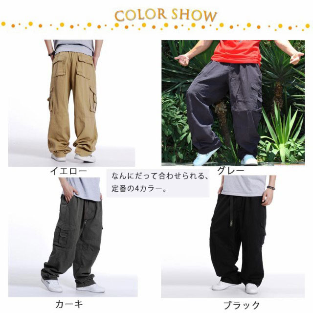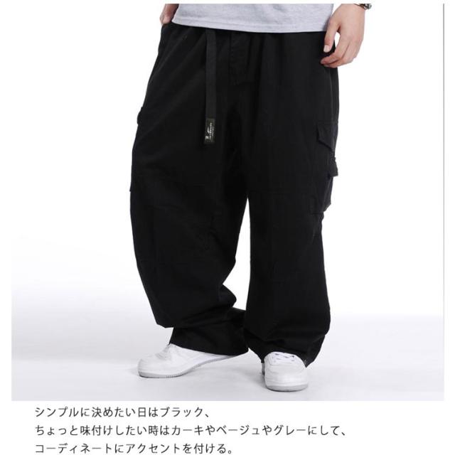 | たっぷり幅感をとったワイドカーゴパンツ。 サイドには大きめのポケットを付けて、カーゴパンツ本来のワーク感も忘れない、味のあるアイテムに仕上がりました。 なんにだって合わせられる、定番の3カラー。 シンプルに決めたい日はブラック、ちょっと味付けしたい時はカーキやベージュやグレーにして、コーディネートにアクセントを付ける。 生地感は厚過ぎず、薄過ぎないのでオールシーズン活躍してくれ、かつしっかりしたコットン素材を使用し、 手触りも良いのでロングシーズン活躍してくれます。 | |