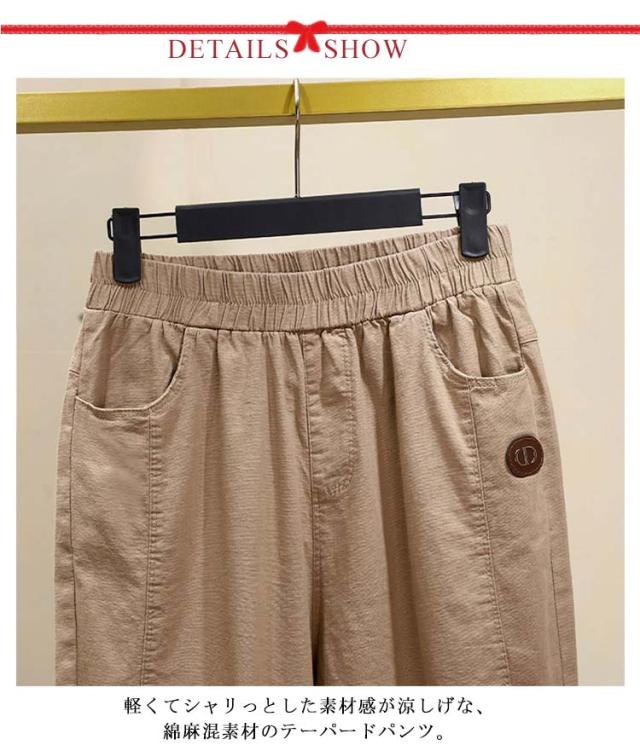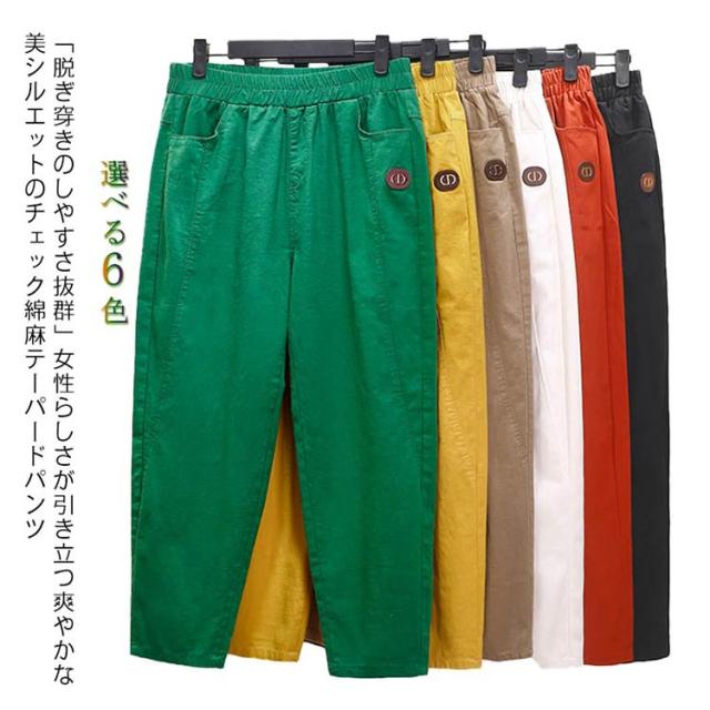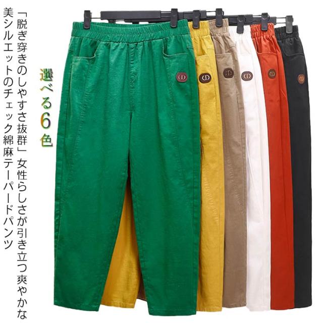 テーパードパンツ 綿麻パンツ リネンパンツ レディース 無地 ロゴ サルエルパンツ イージーパンツ リラックスパンツ チェックパンツ ウエストゴム ーパード ロングパンツ 9分丈 サルエル ゆったり ナチュラル 春夏 20代 30代 40代