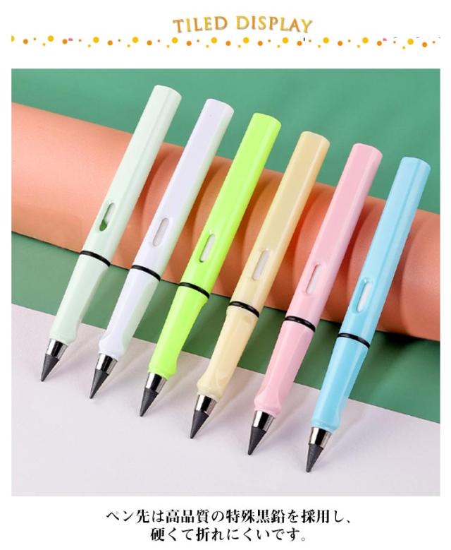 | 削らなくても永遠に描ける鉛筆! 付属の消しゴムで消せます。 ペン先は高品質の特殊黒鉛を採用し、硬くて折れにくいです。 学校での用途のみならず、全世代に気に入ってもらえるスタイルに仕上がった鉛筆です。 入学祝・就職祝・誕生日プレゼントなどとしてもおススメ。 | |