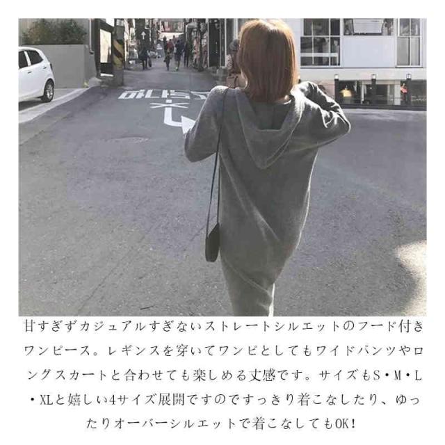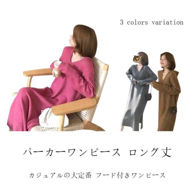 パーカーワンピース ロング丈 ワンピース レディース チュニック 長袖 パーカー 大きいサイズ 冬 春 ニットソー フードワンピース