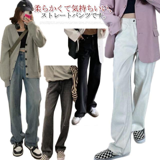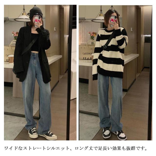 デニム パンツ レディース デニムパンツ ワイドパンツ ジーンズ ジーパン ズボン ボトムス ゆったり 大きいサイズ 小さいサイズ ハイウエスト 体型カバー ストレート 春夏秋冬 カジュアル 10分丈 おしゃれ 送料無料
