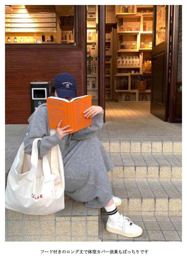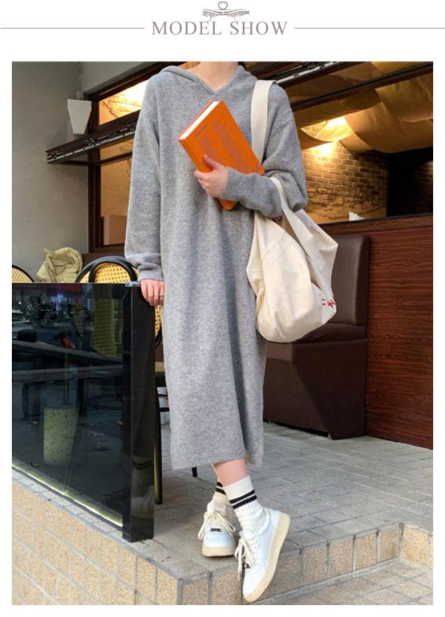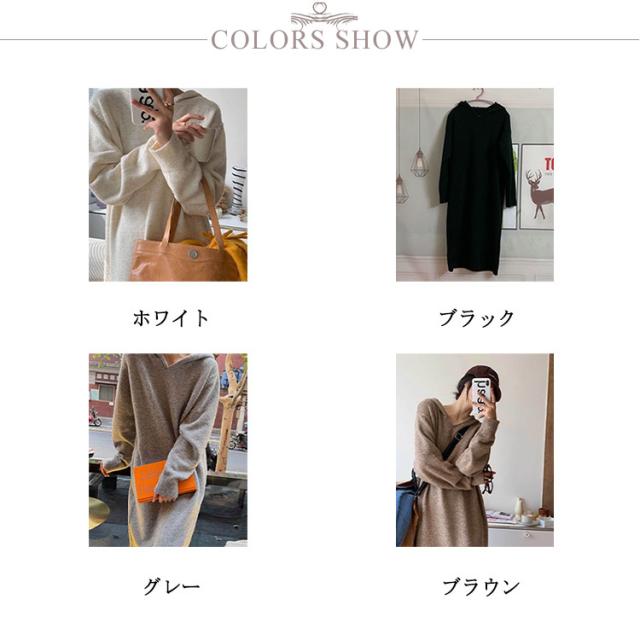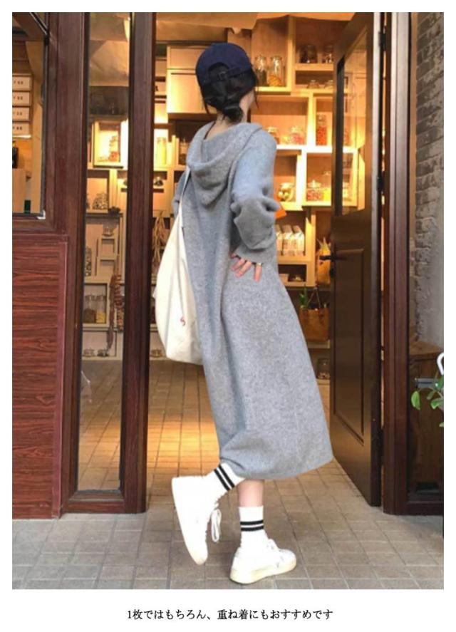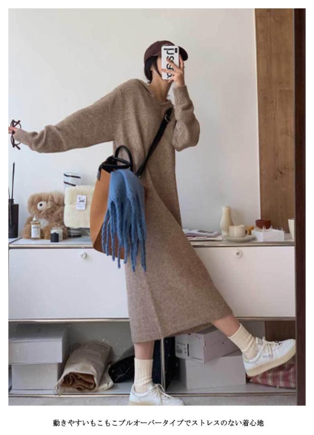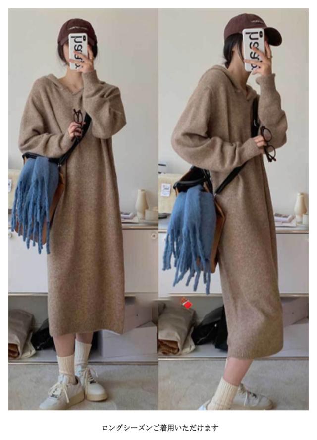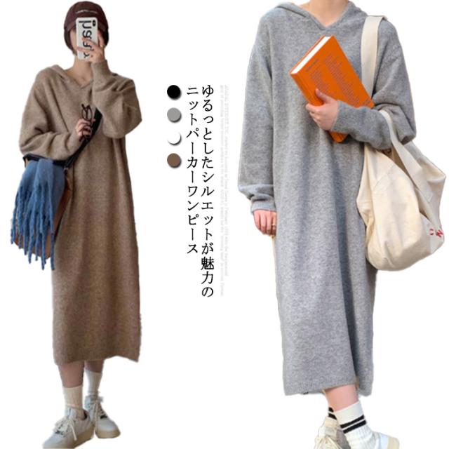 フード付き ニット ワンピース レディース 春 秋冬 ロングワンピース ゆったり パーカーワンピース 長袖 体型カバー 無地 大きいサイズ プルオーバー セーター インナーワンピース カジュアル