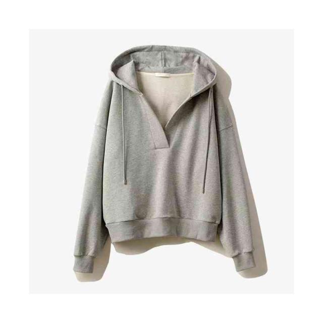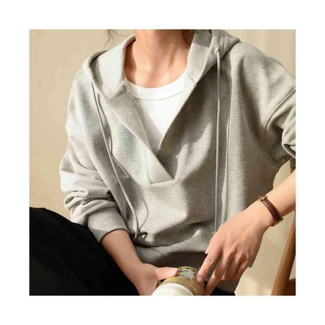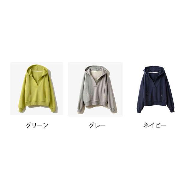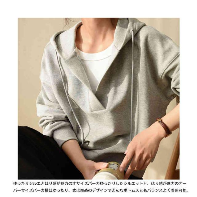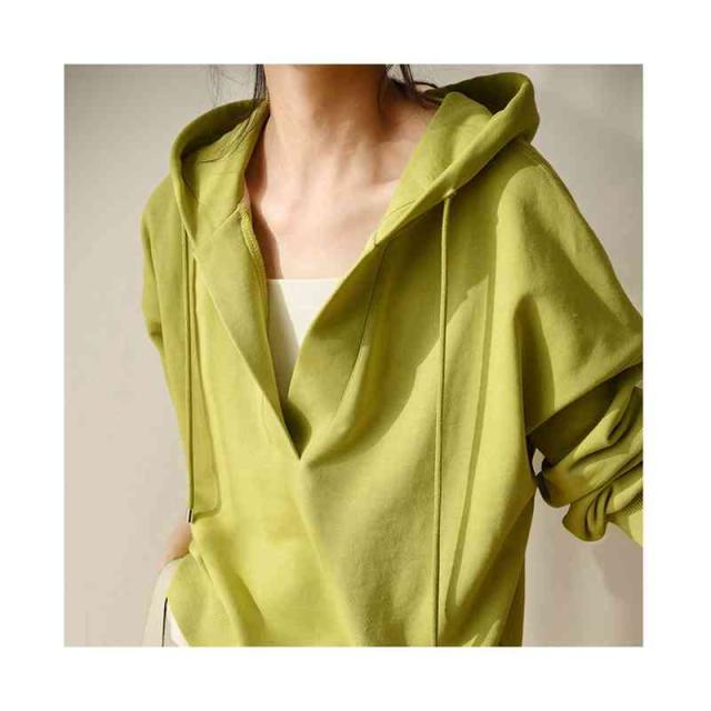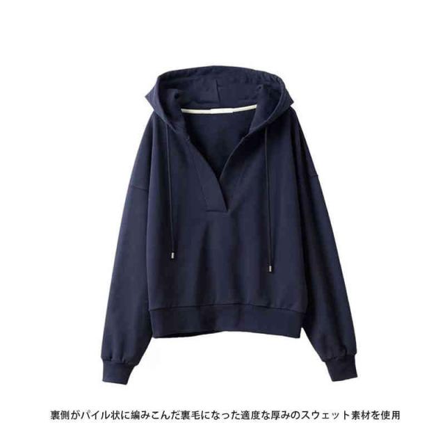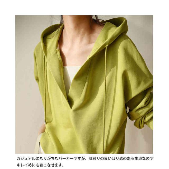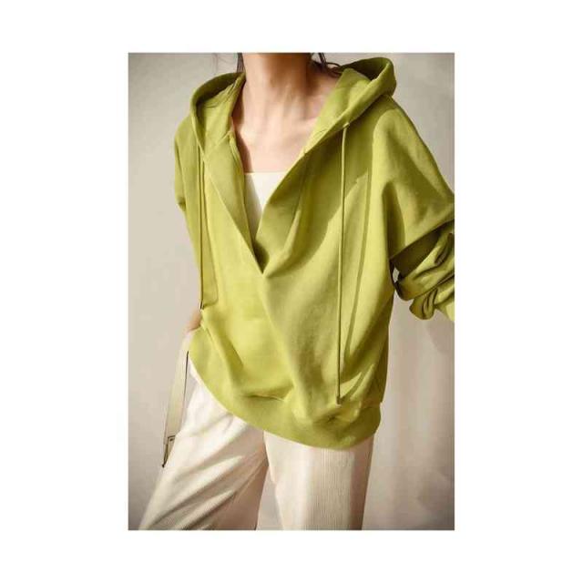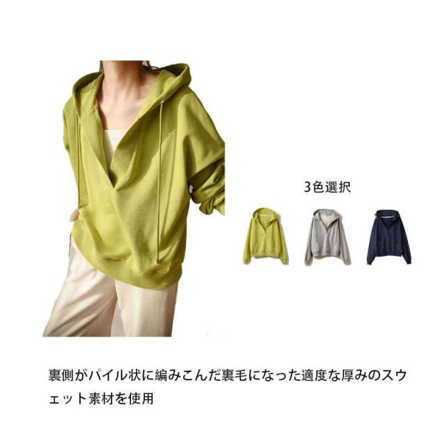 深いVネック 長袖 洗える レディースファッション トップス スウェット トレーナー パーカー フード カットソー フリース オーバーサイズ レディース / トップス パーカー スウェット レーナー フード付き 春 初春 グリーン グレー ネイビー