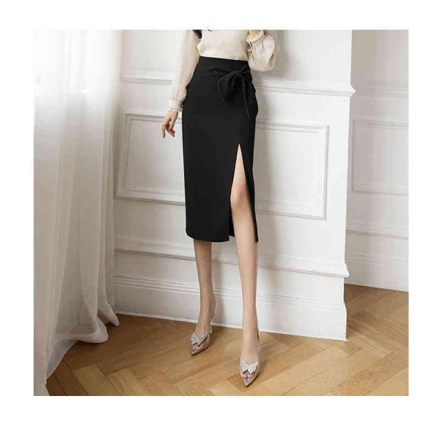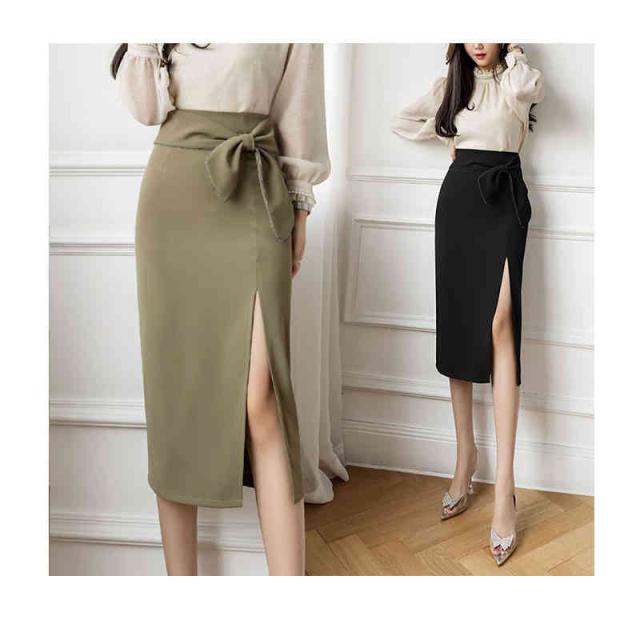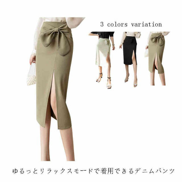 タイトスカート スカート レディース リボン ミモレ丈 Aライン 歩きやすい ハイウエスト スリット ウエストリボン 秋冬 夏 春 膝下 ひざ丈 オシャレ 脚長 可愛い 大人 オトナ 上品 オフィス