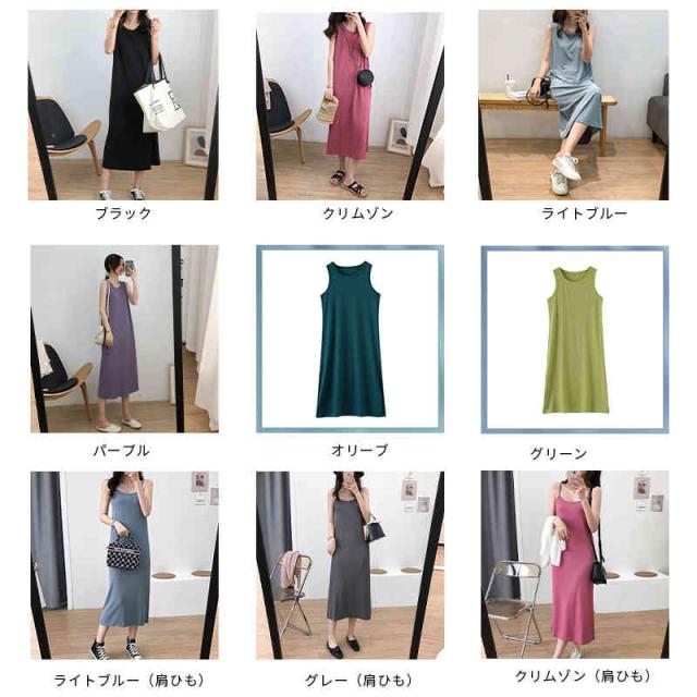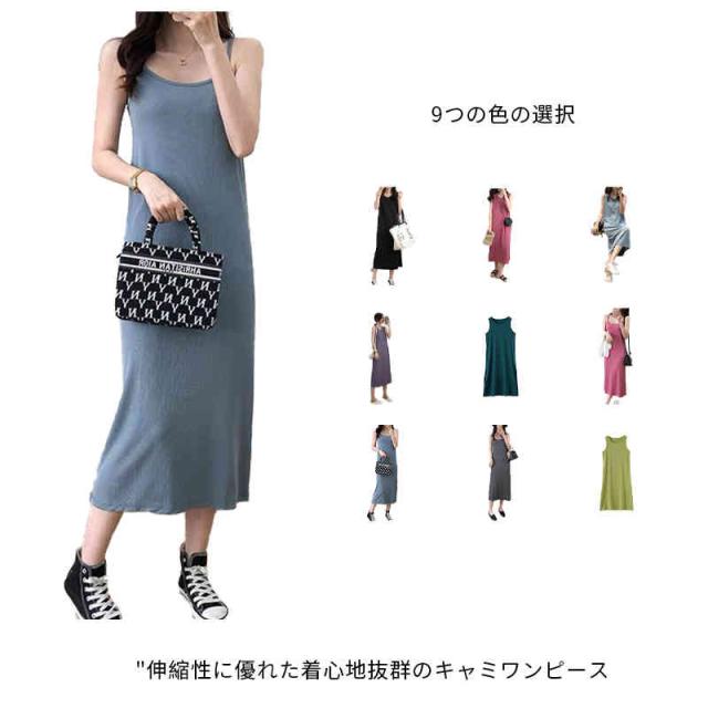 インナー ワンピース ノースリーブ ワンピース キャミソールワンピース キャミワンピ ペチコート 肩ひも ルームウエア レディース 春 夏 秋 無地 ロング 透け防止 レイヤード 重ね着 シンプル ホワイト ブラック グレー ブルー ベージュ M L XL 送料無料